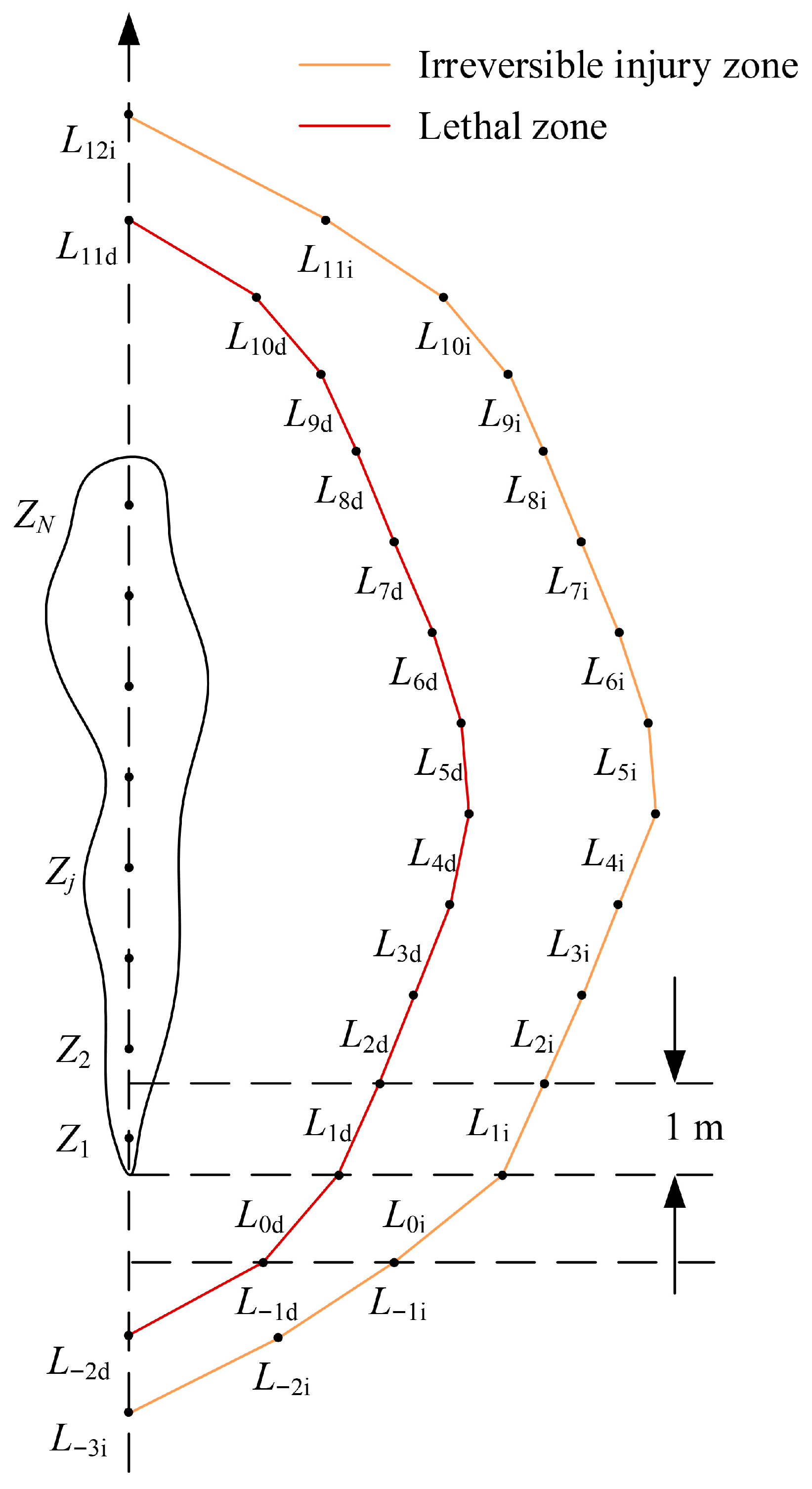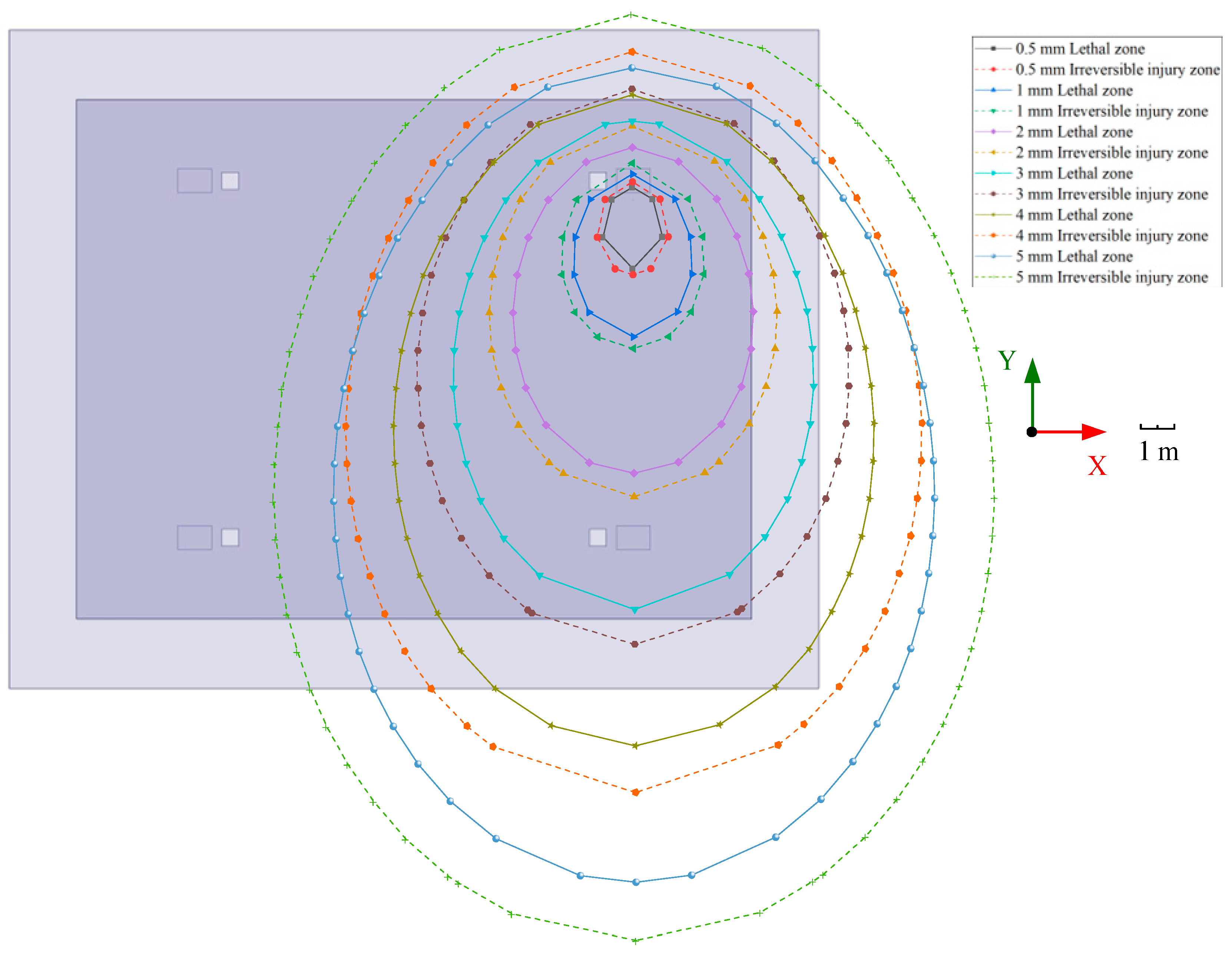 3.1. Safety Distance and Hazardous Footprint Based on WMP