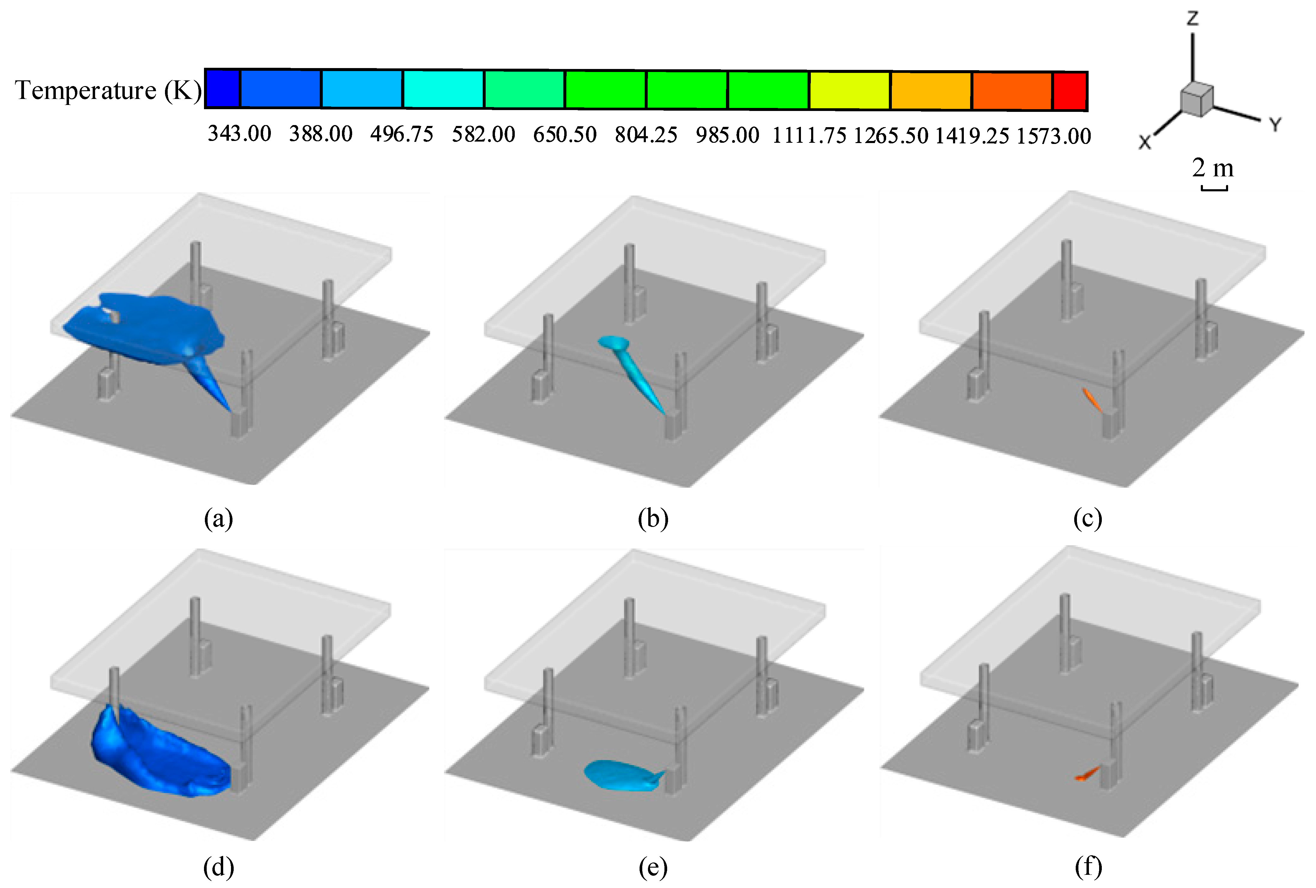 | High-temperature plume length (m) | 6.70 | 4.73 | 6.72 | 3.89 |