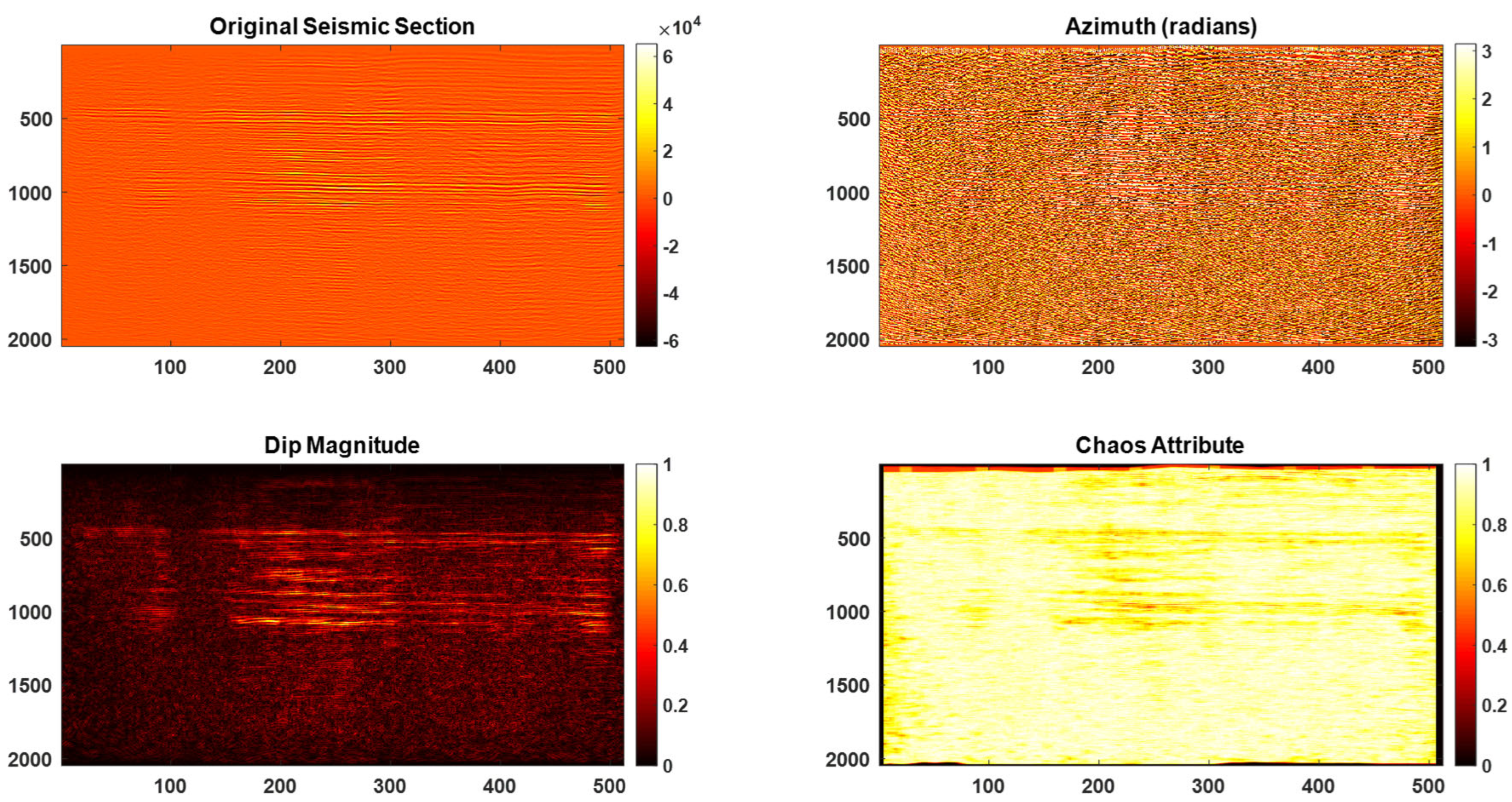 | Dip Magnitude [27] | Measures the steepness of seismic reflectors in the vertical direction. | |