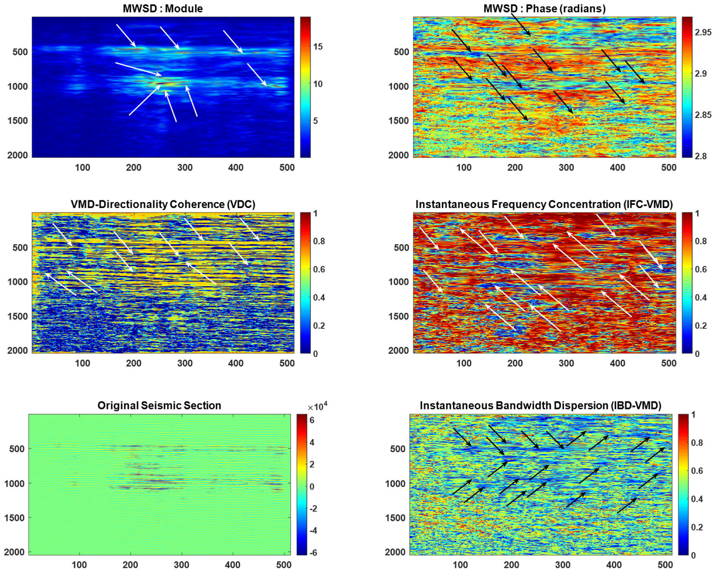 - Wang, X.J.; Xue, Y.J.; Zhou, W.; Luo, J.S. Spectral decomposition of seismic data with variational mode decomposition-based Wigner–Ville distribution. IEEE J. Sel. Top. Appl. Earth Obs. Remote Sens. 2019, 12, 4672–4683. [Google Scholar] [CrossRef]