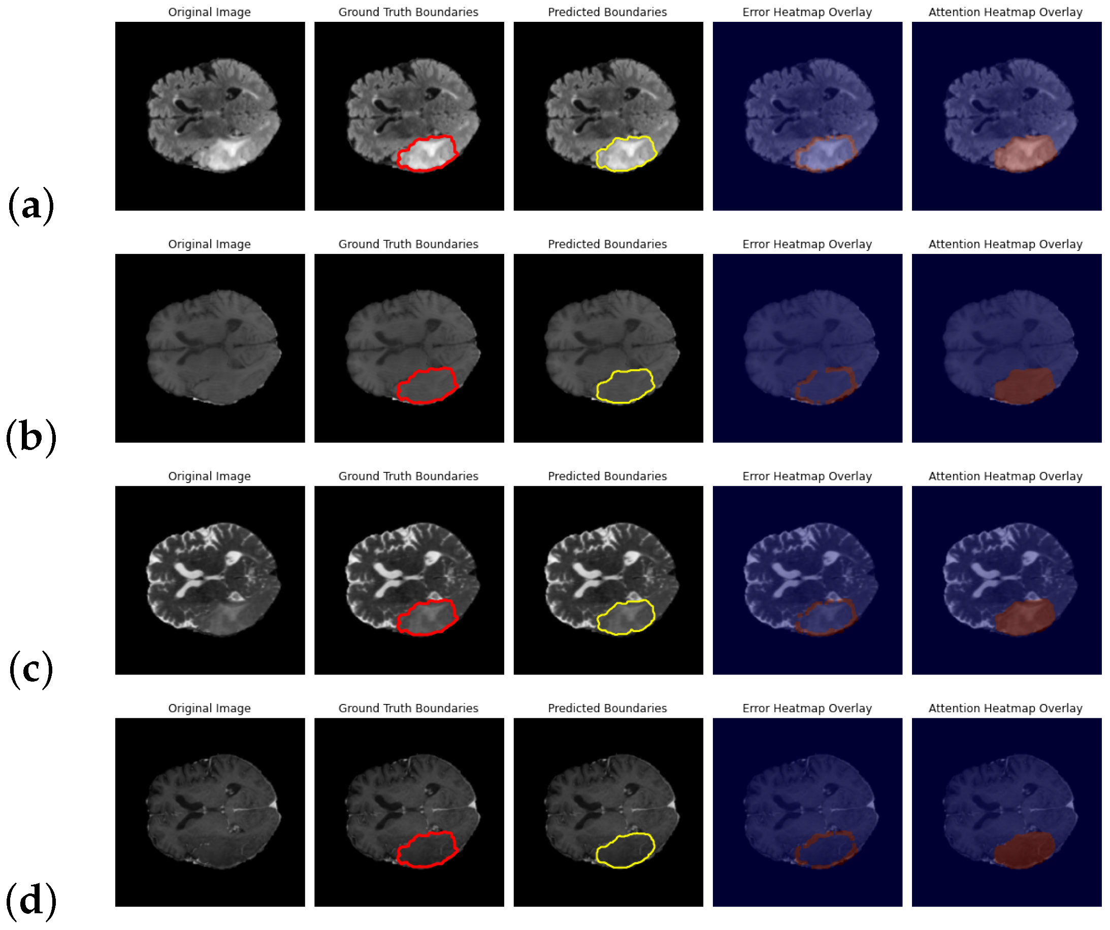 4.7. Qualitative Results on BraTS 2021: Visual and Metric-Based Analysis