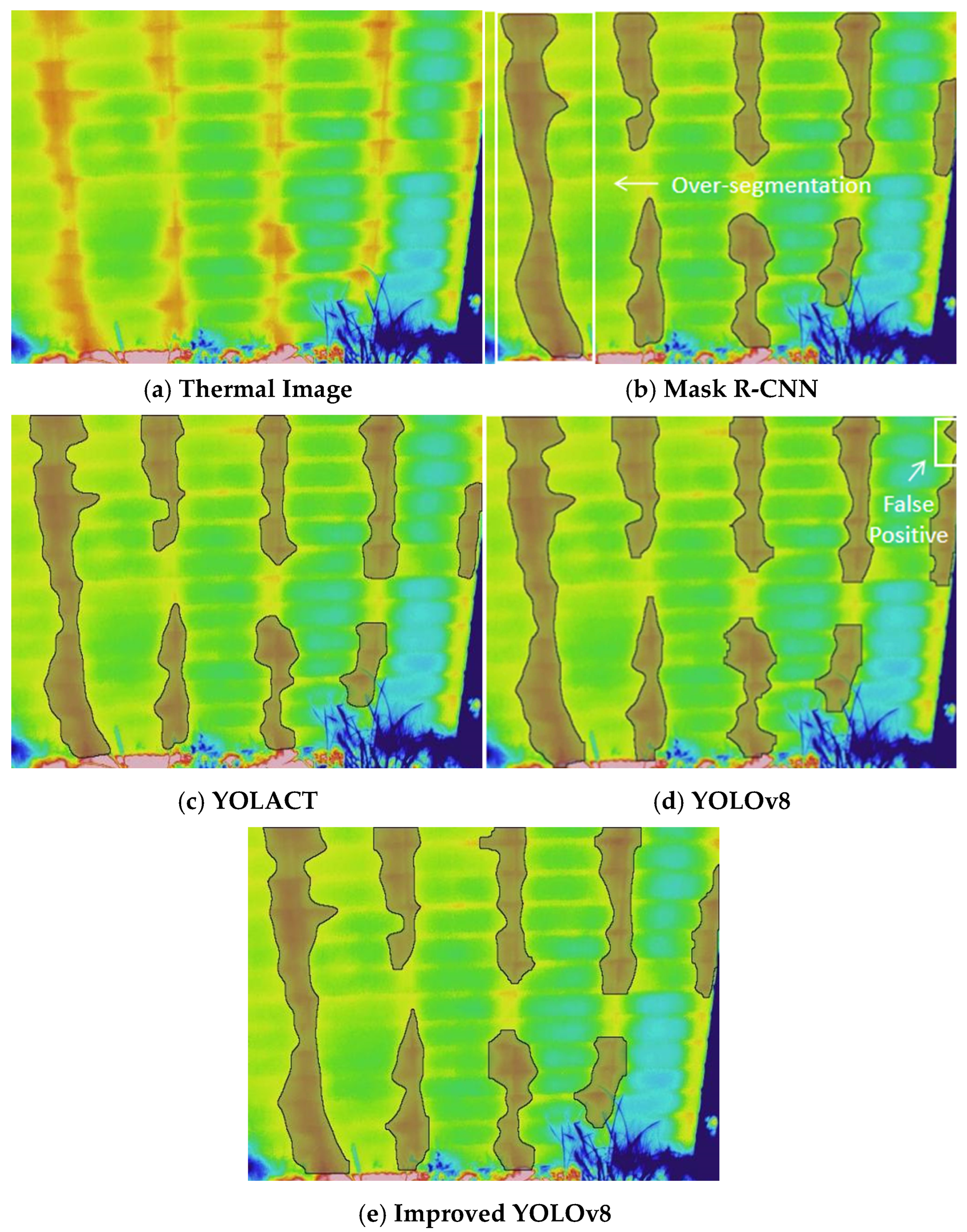 In summary, to make up for the deficiencies of existing research in terms of model comparison and adaptability to real scenarios, this paper combines infrared thermal imaging technology with the deep learning-based instance segmentation method. On the one hand, a dedicated dataset for hollow defects in building exterior walls, which contains various real interference factors, is constructed, and systematic performance comparison experiments are carried out on several current mainstream instance segmentation models to clarify their adaptability to real application scenarios. On the other hand, the PSA Position-Sensitive Attention mechanism is introduced to optimize and improve the YOLOv8 model, so as to enhance its anti-interference capability and segmentation accuracy in complex real scenarios. Ultimately, the optimal automated detection scheme that balances detection accuracy and inference efficiency is screened out, which provides tangible technical support and practical references for the large-scale non-destructive testing of hollow defects in building exterior walls.