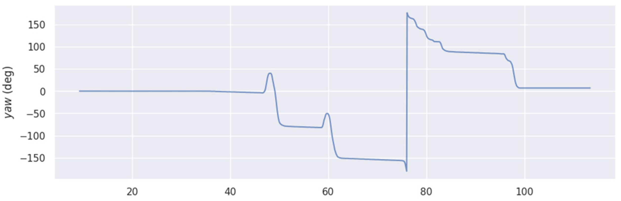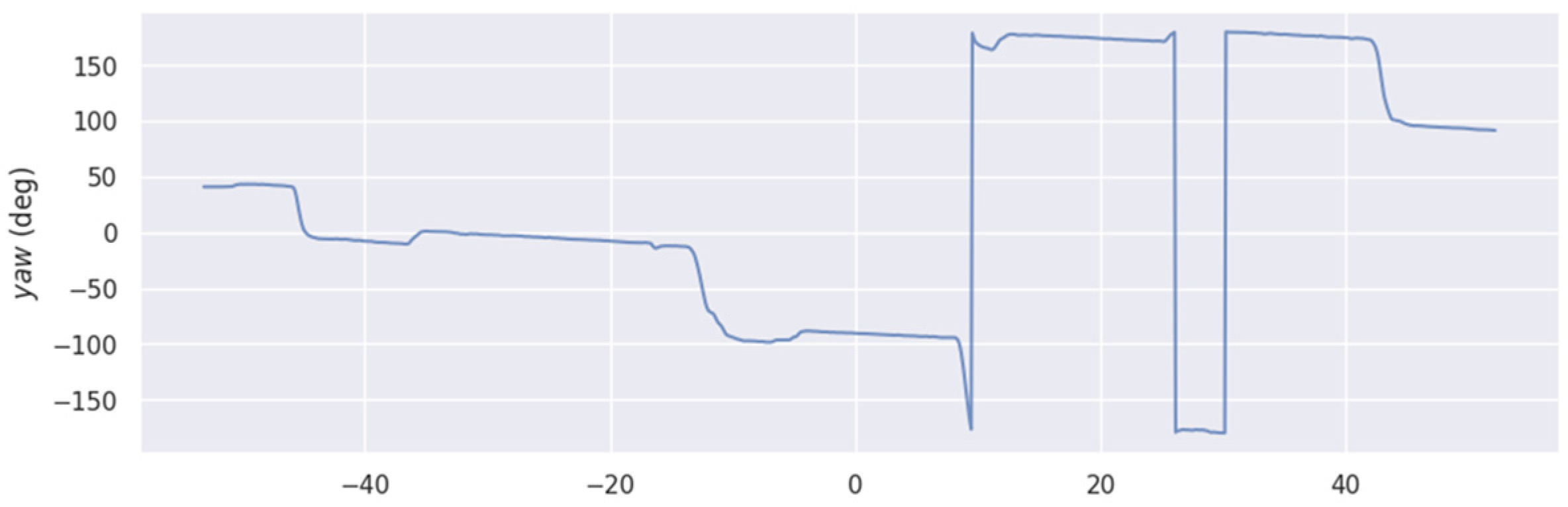 Figure 19. Time-dependent variation curve of robot yaw angle in outdoor scenarios (note: the improved algorithm possesses self-adjusting capabilities).