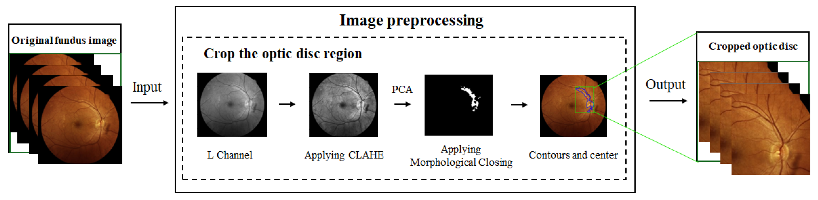 - Yin, P.; Xu, Y.; Zhu, J.; Liu, J.; Yi, C.A.; Huang, H.; Wu, Q. Deep Level Set Learning for Optic Disc and Cup Segmentation. Neurocomputing 2021, 464, 330–341. [Google Scholar] [CrossRef]