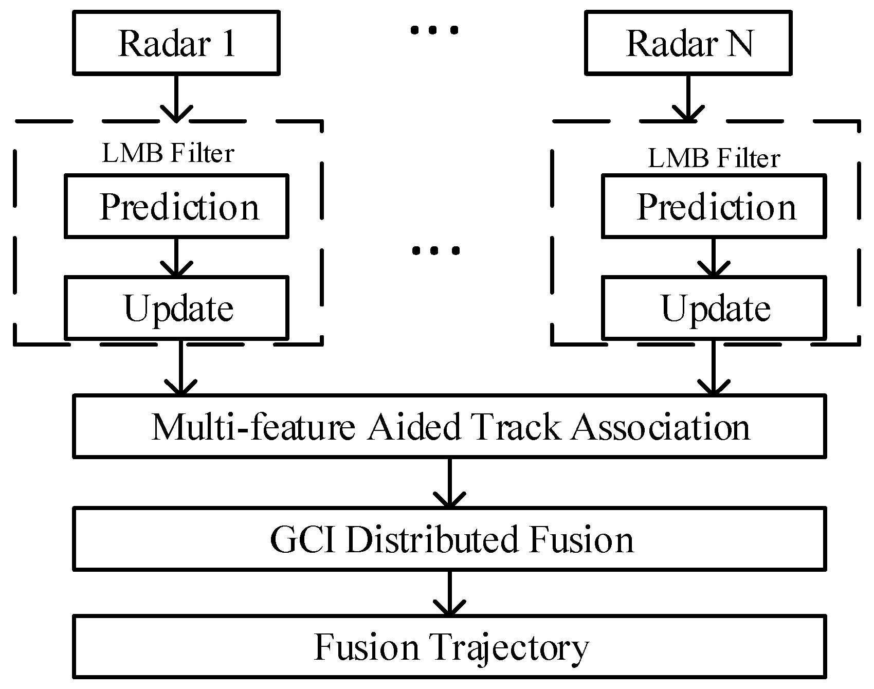 Tao J, Lu X, Tan J, Li Y, Gao Y, Jiang D. Multi-Radar Distributed Fusion Algorithm Aided by Multi-Feature Information. Applied Sciences. 2026; 16(7):3159. https://doi.org/10.3390/app16073159