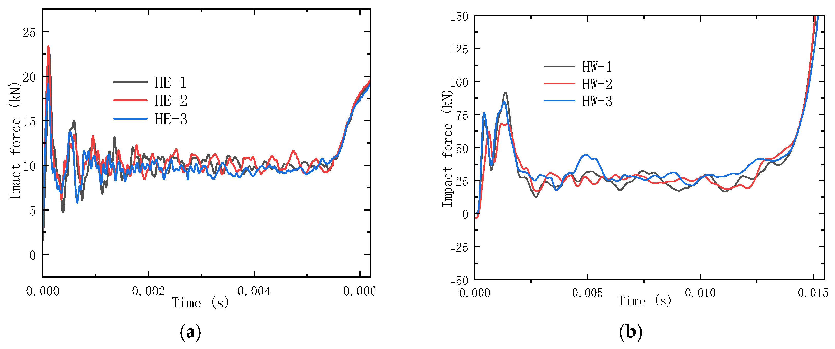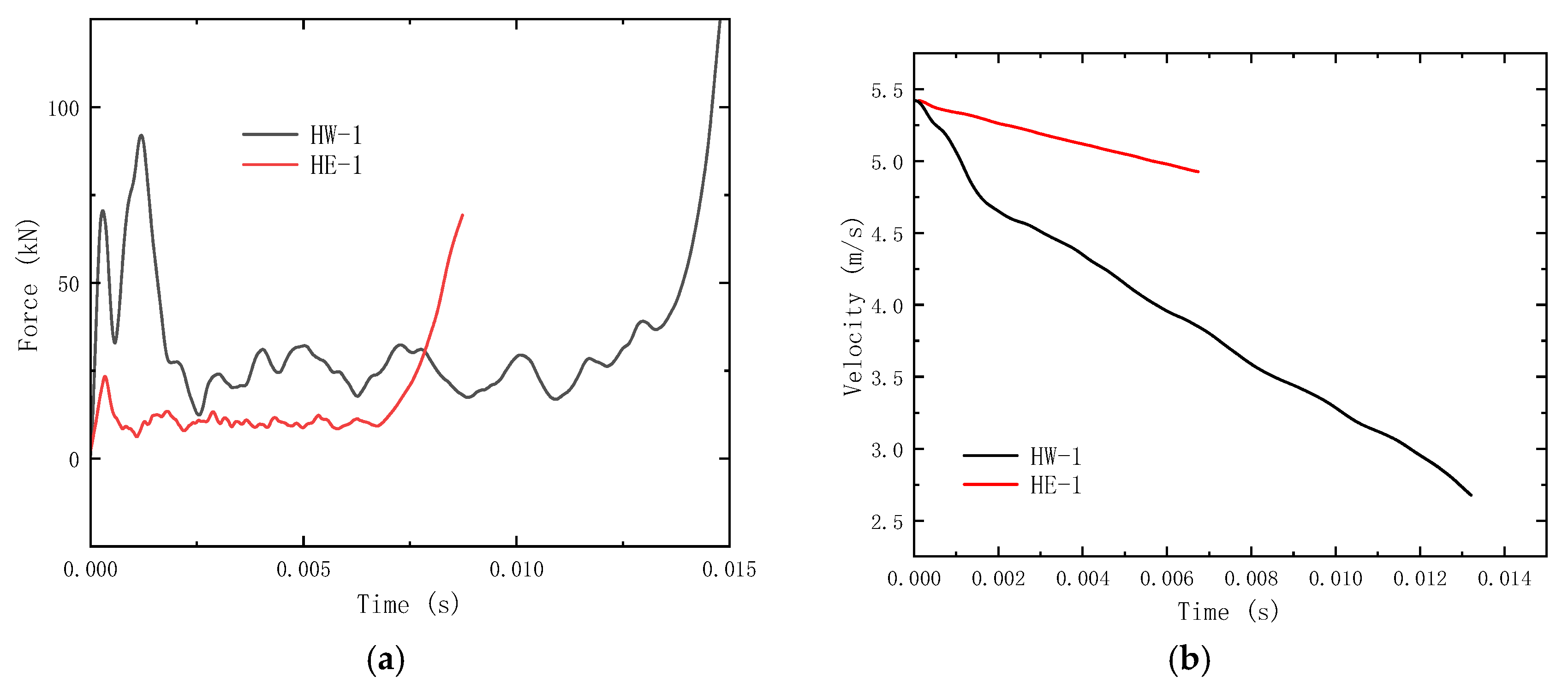 4.1. Analysis of the Dynamic Impact Response of Honeycomb Structures in Water