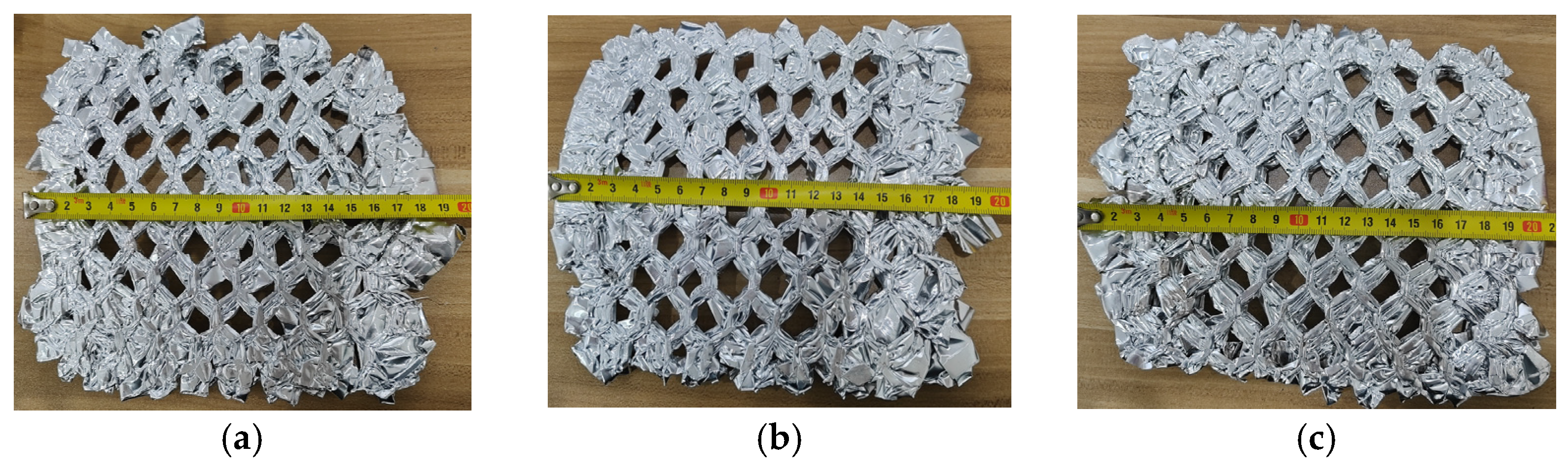 - Dutta, A.; Das, A.; Pal, S.K.; Panda, S.K. Evaluation of structural defects on crushing performance of adhesive-bonded aluminium honeycombs: Alternative fabrication strategy and real-time defect monitoring. Compos. Struct. 2026, 379, 119940. [Google Scholar] [CrossRef]