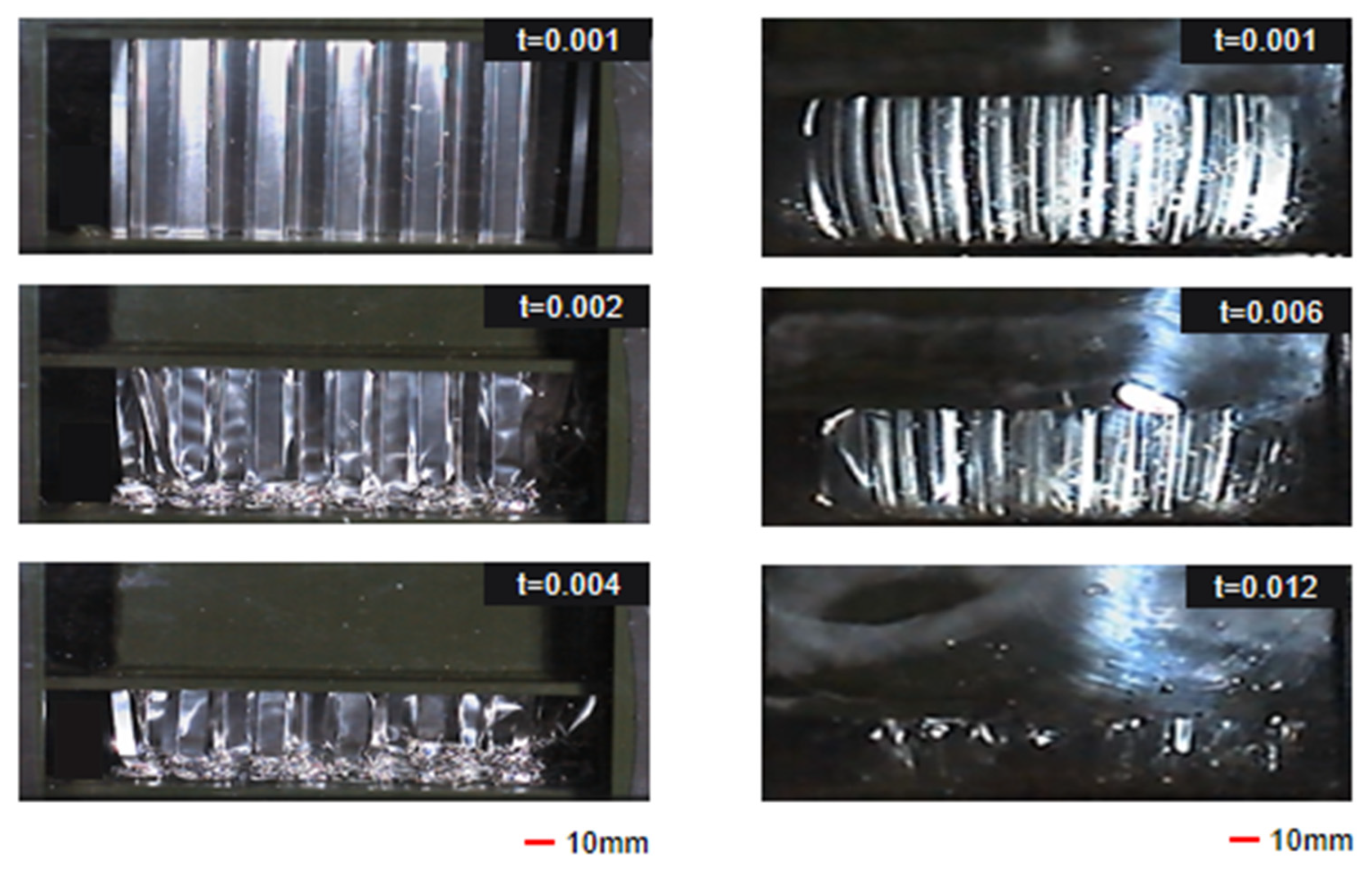 4.3. Analysis of the Impact Energy Absorption Mechanism of Honeycomb Structures in Water