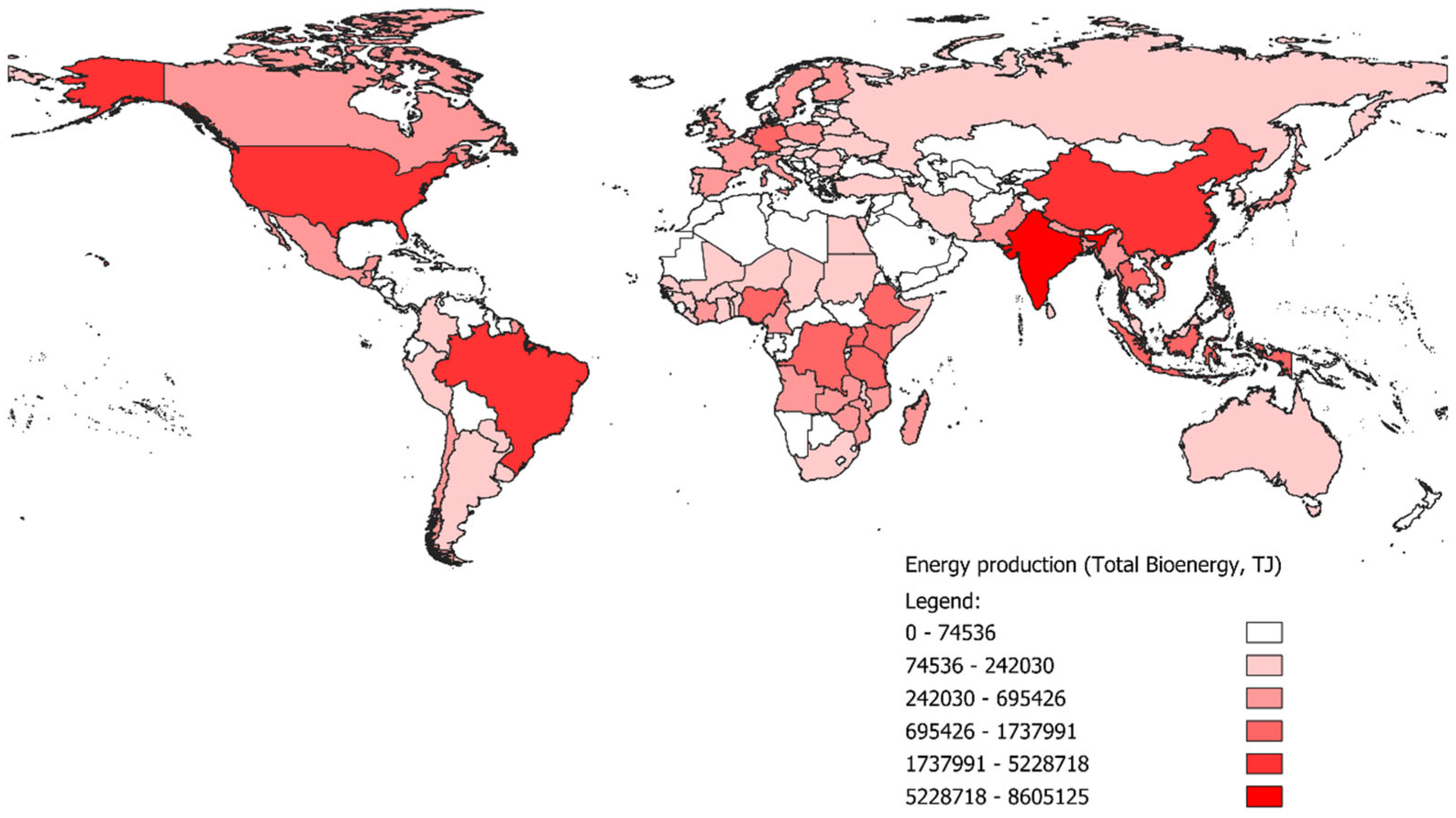 World total bioenergy production (Tj), in 2023.