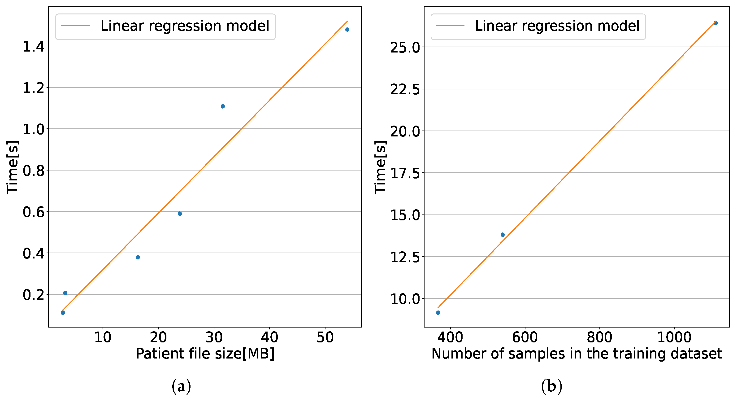 Figure 9b depicts how training duration scales with the size of the training dataset.