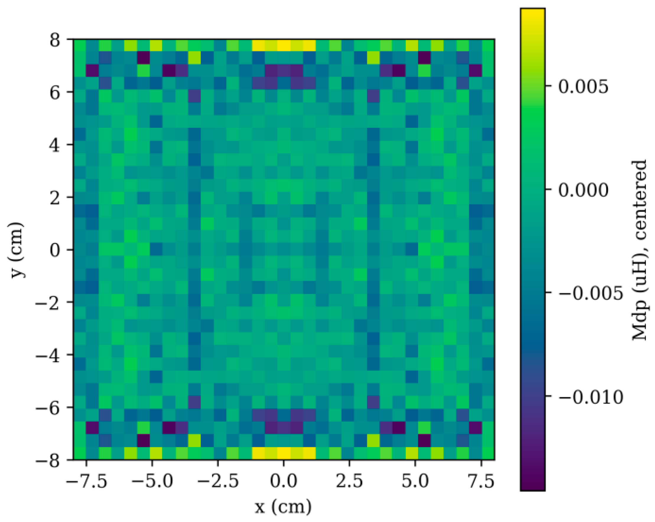 Figure 3. 2D distribution of the residual direct-coupling mutual inductance M dp (x, y) after zero-reference calibration.