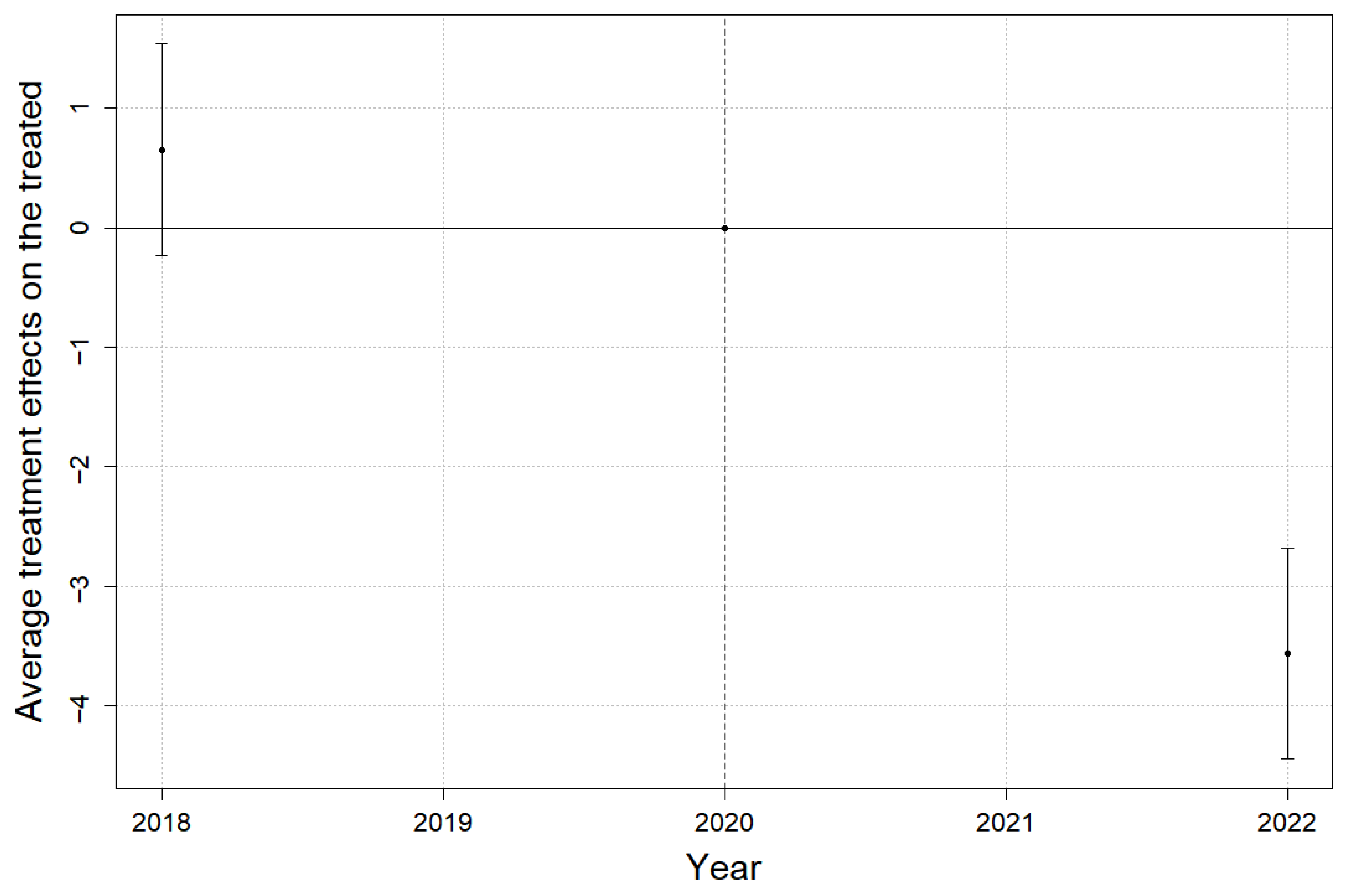 4.2. Comparison Using Difference-in-Differences with Two-Way Fixed Effects Model