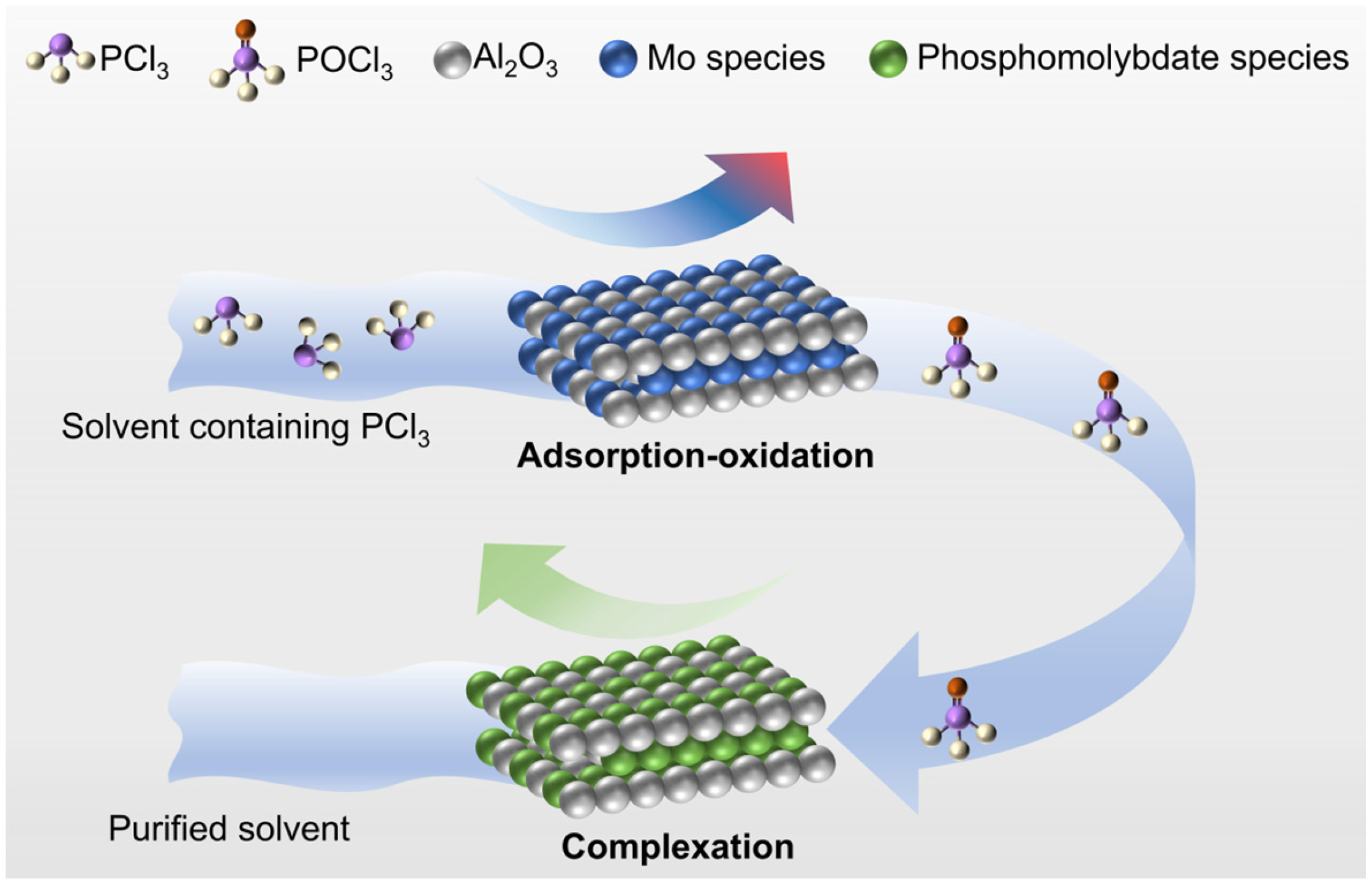 Efficient Adsorption Removal of Trace PCl3 Impurities from an Organic System over Mo-Modified Al2O3 Material