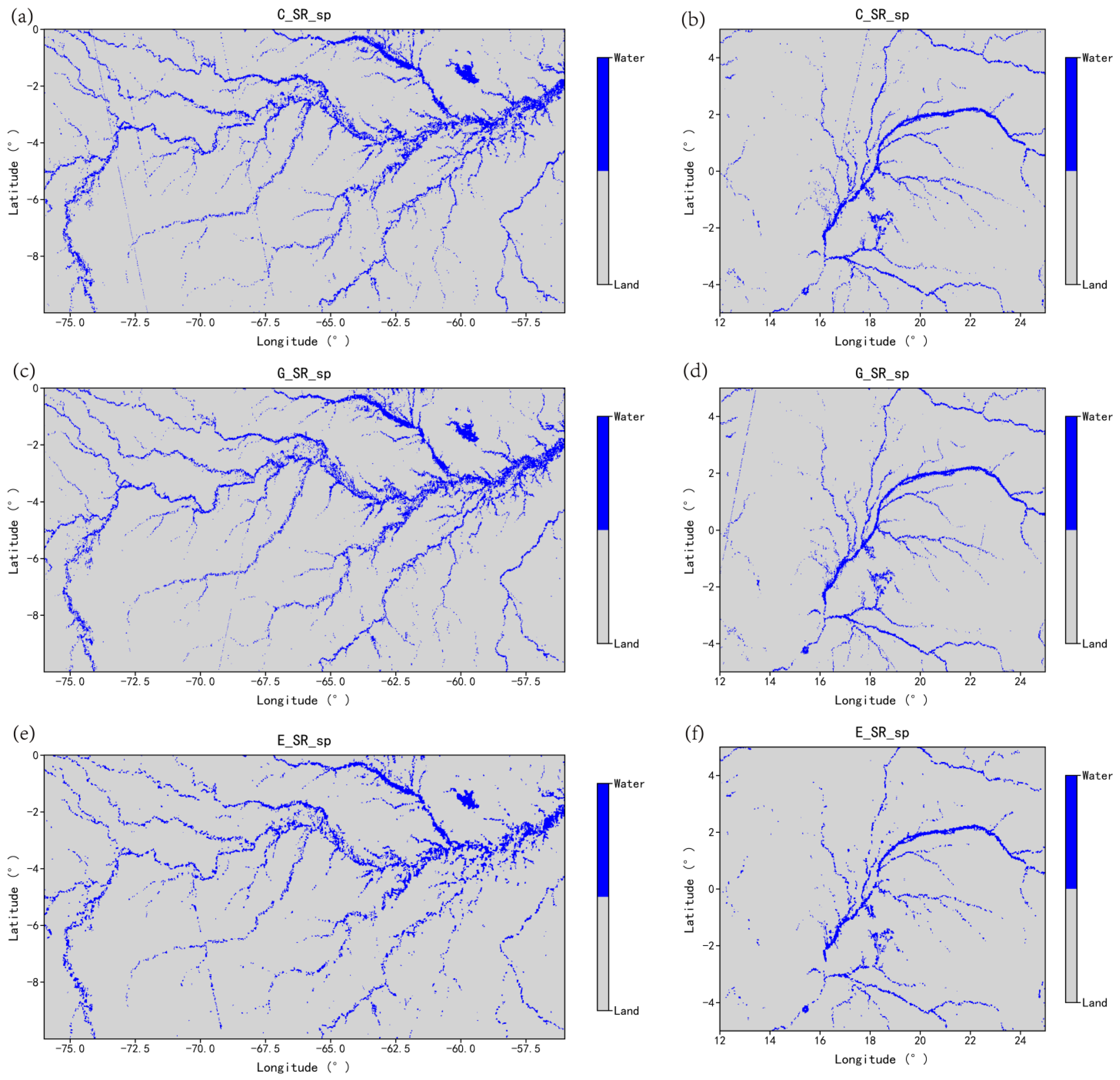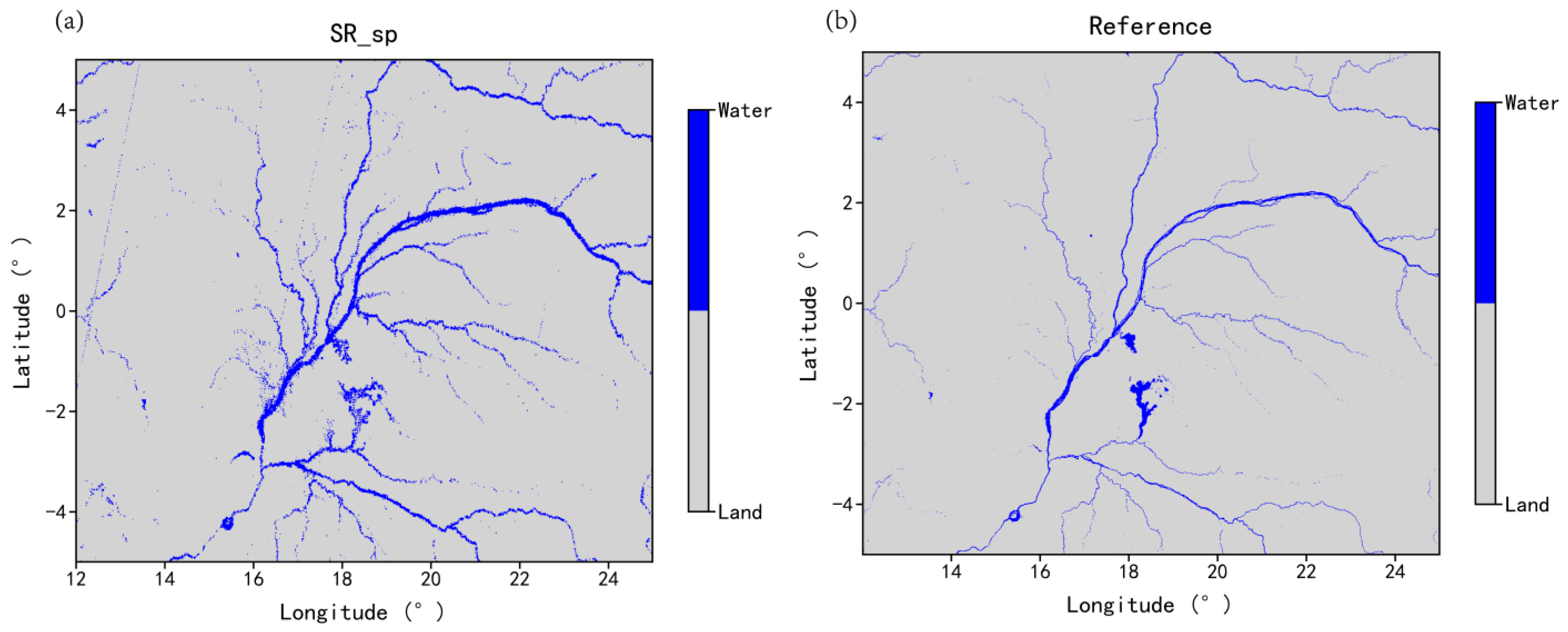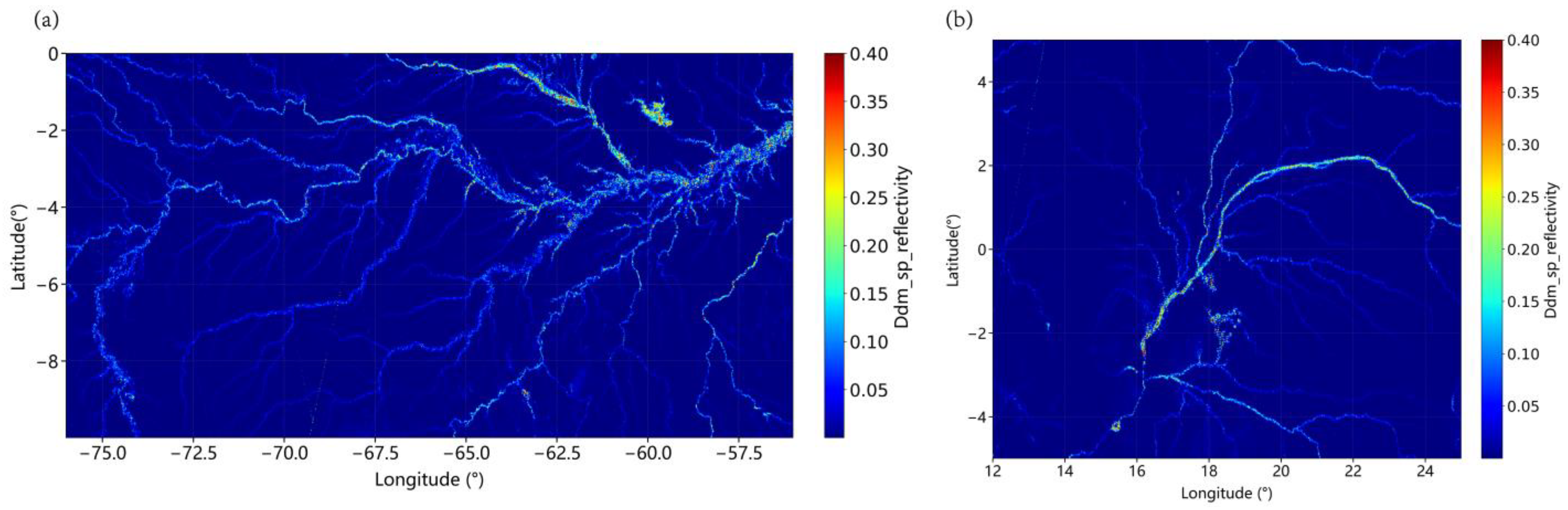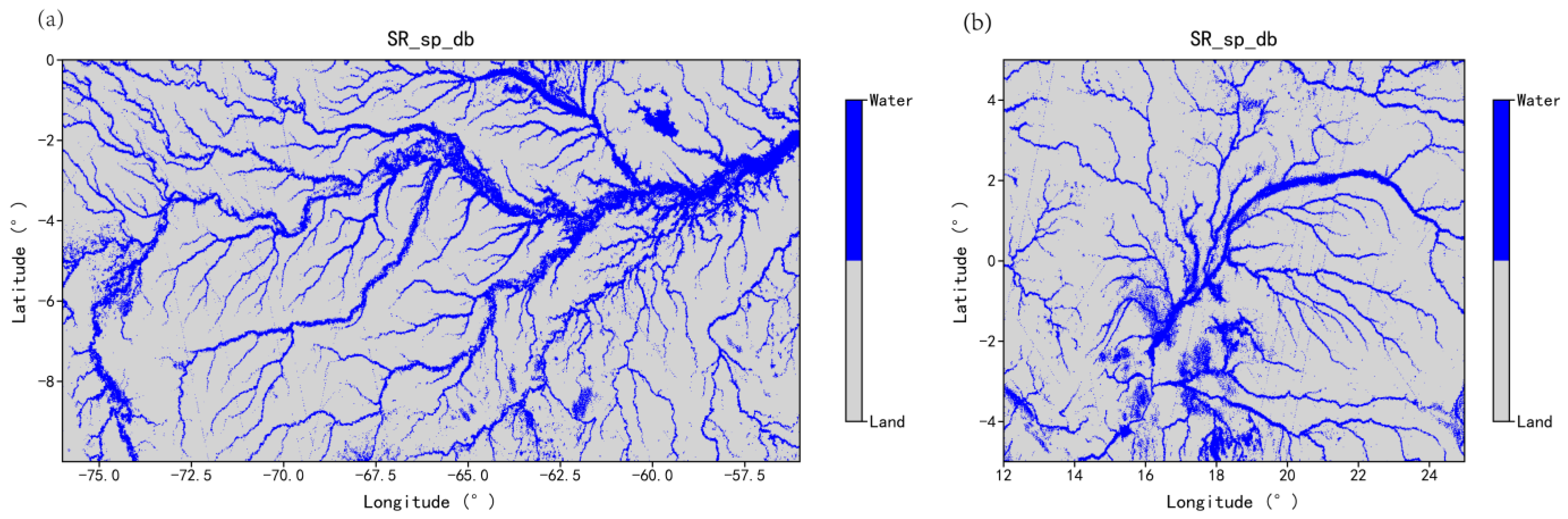 4.1. Water Body Detection Results in the Amazon Basin and the Congo Basin