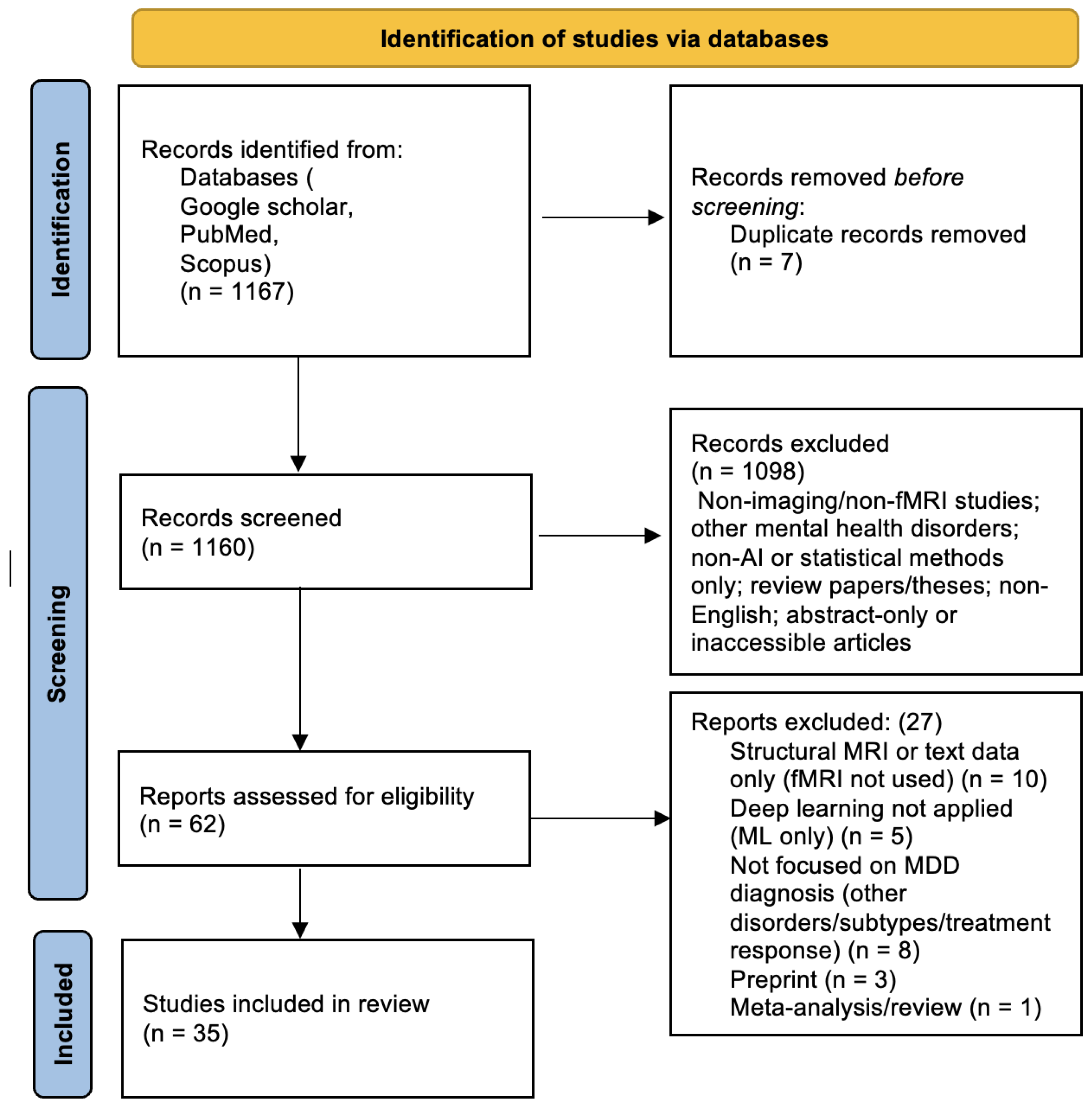 - Papers focusing solely on disorders other than MDD.