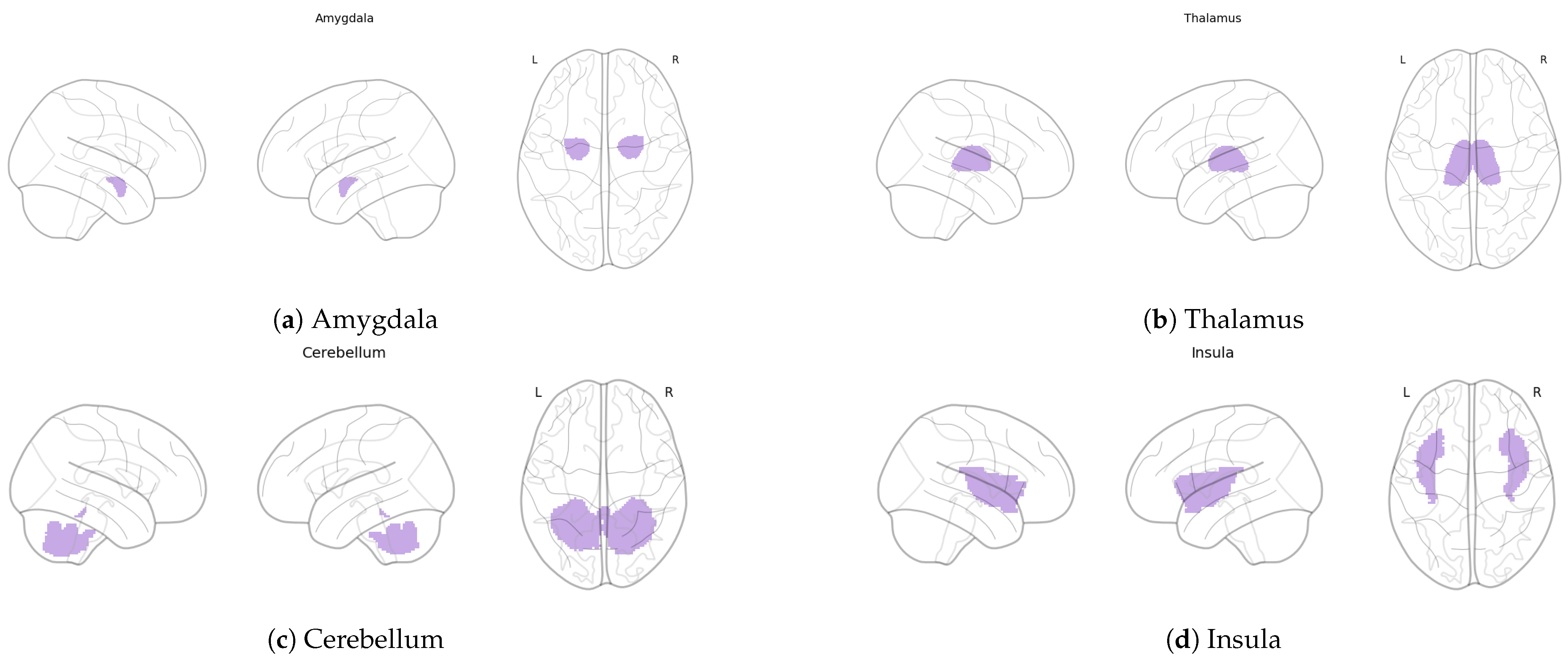 | Amygdala | 6 | [29,32,39,40,42,45] |
