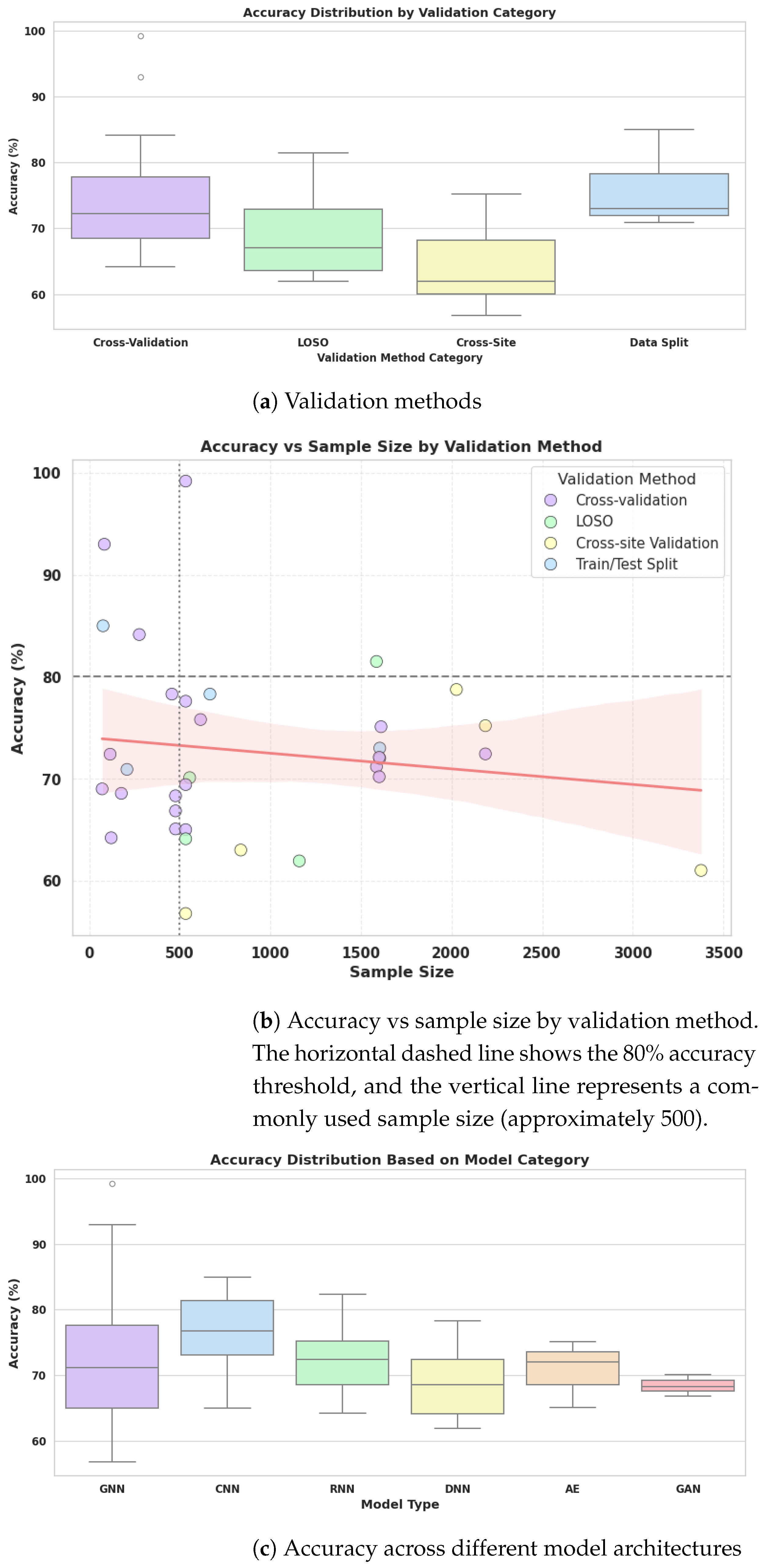 3.1. RQ1: How Do Sample Size and the Use of Multi-Site Datasets Promote the Generalisability of Deep Learning Models?