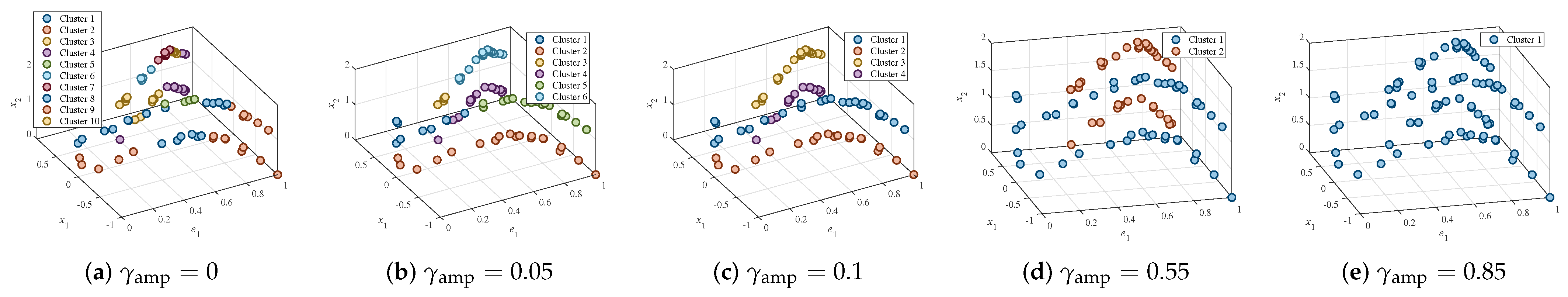 In lines 2–8, clustering is repeated D times, once for each dimension . Line 3 defines an amplitude threshold as , which represents the maximum amplitude allowed within a single cluster. is an amplitude threshold coefficient and ranges from 0 to 1.