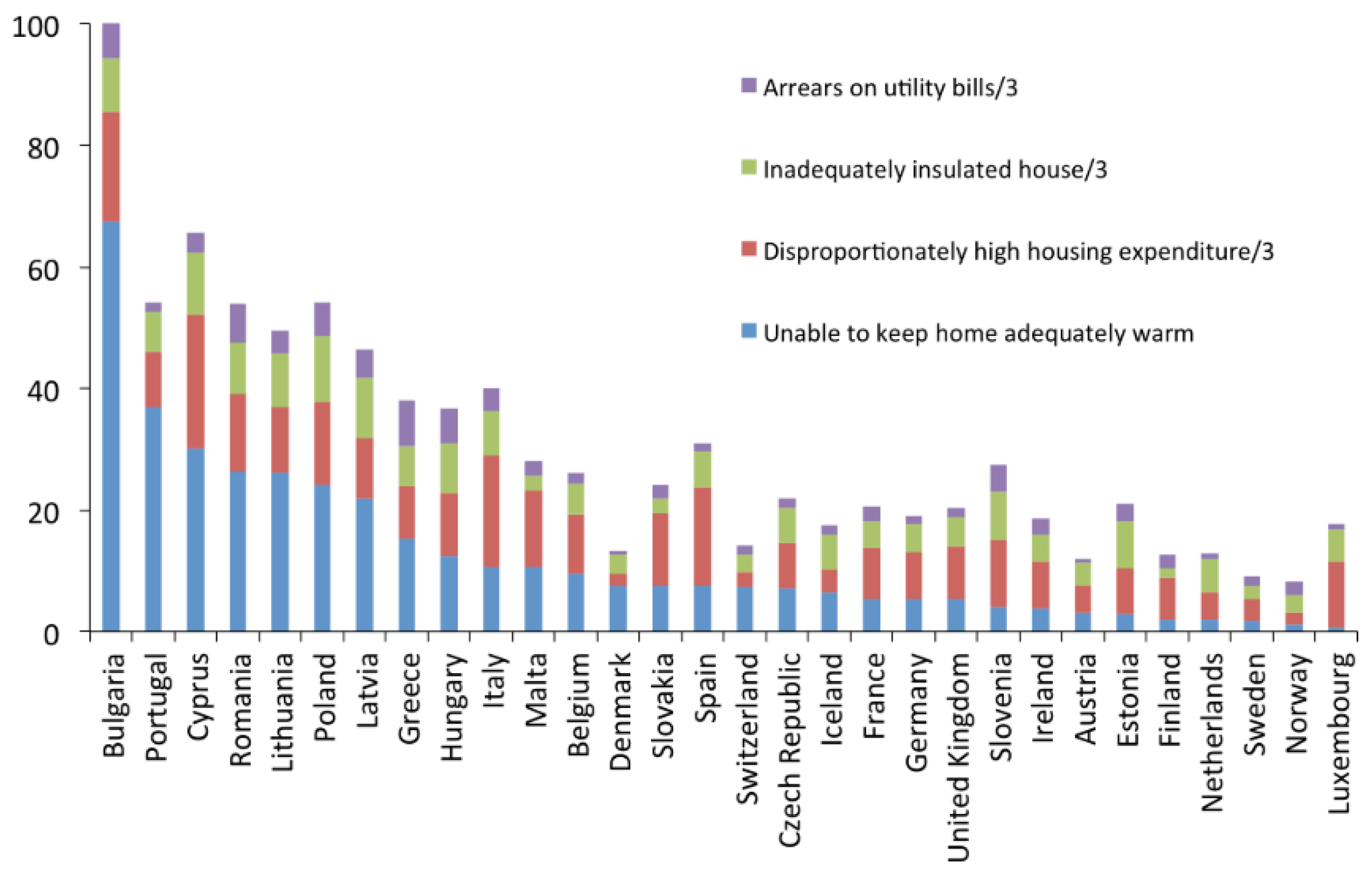 15]: “a situation where a household is unable to access a socially and materially necessitated level of energy services in the home”. This 1991 study showed that Portugal, like other southern and eastern countries, is one of the most vulnerable to the problem of energy poverty (see