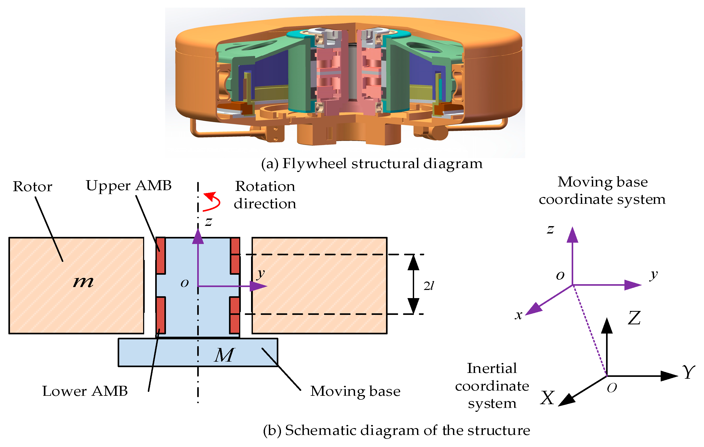 2. Dynamic Model of the Magnetic Bearing Flywheel Considering Moving Base Excitations