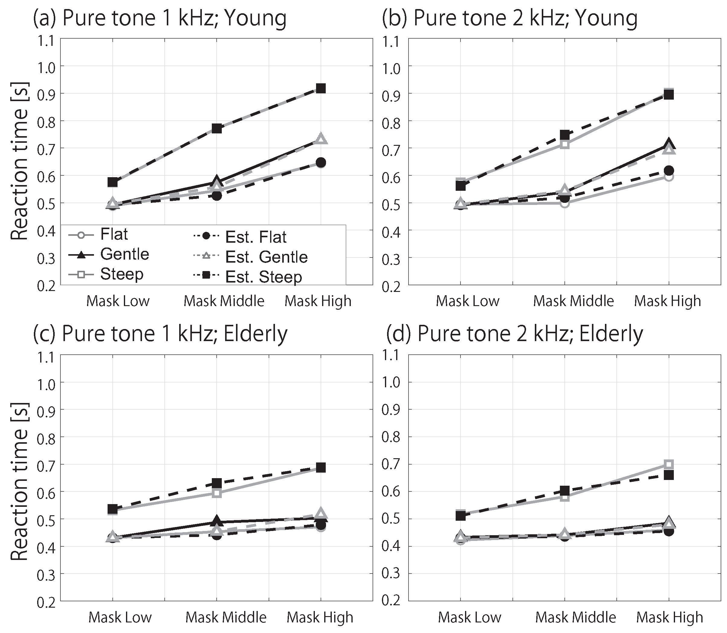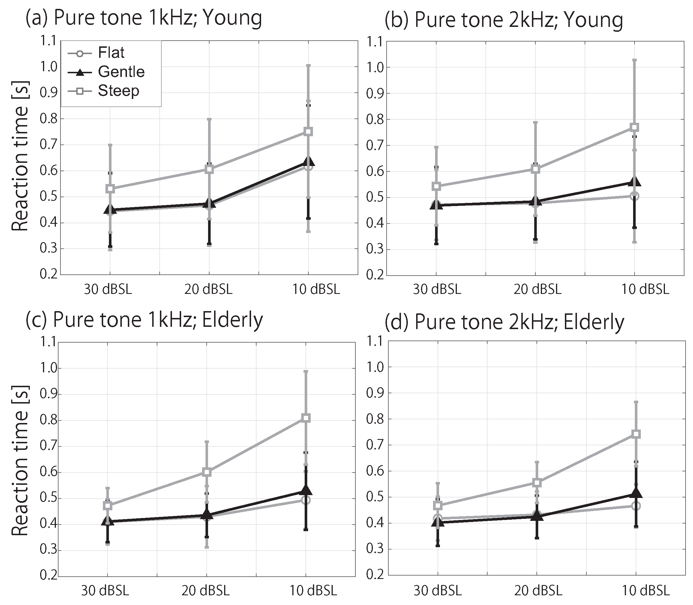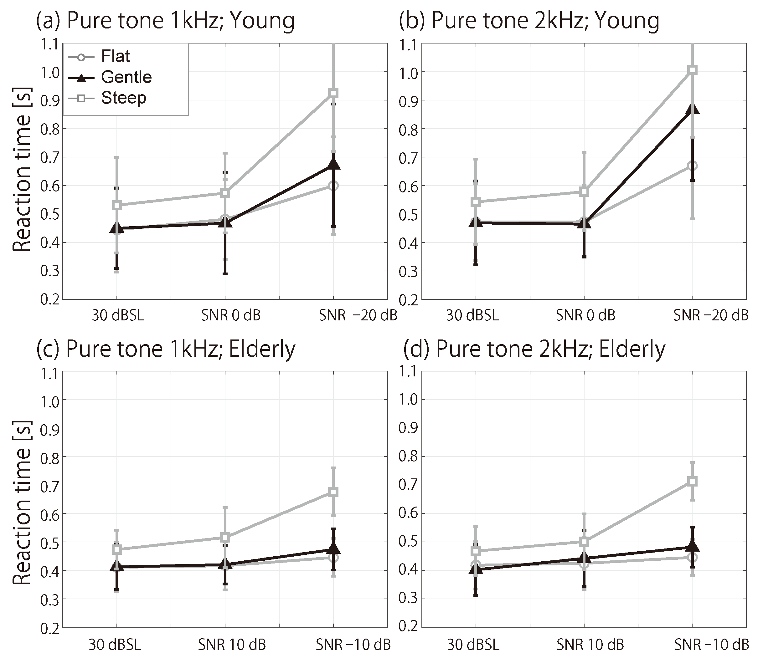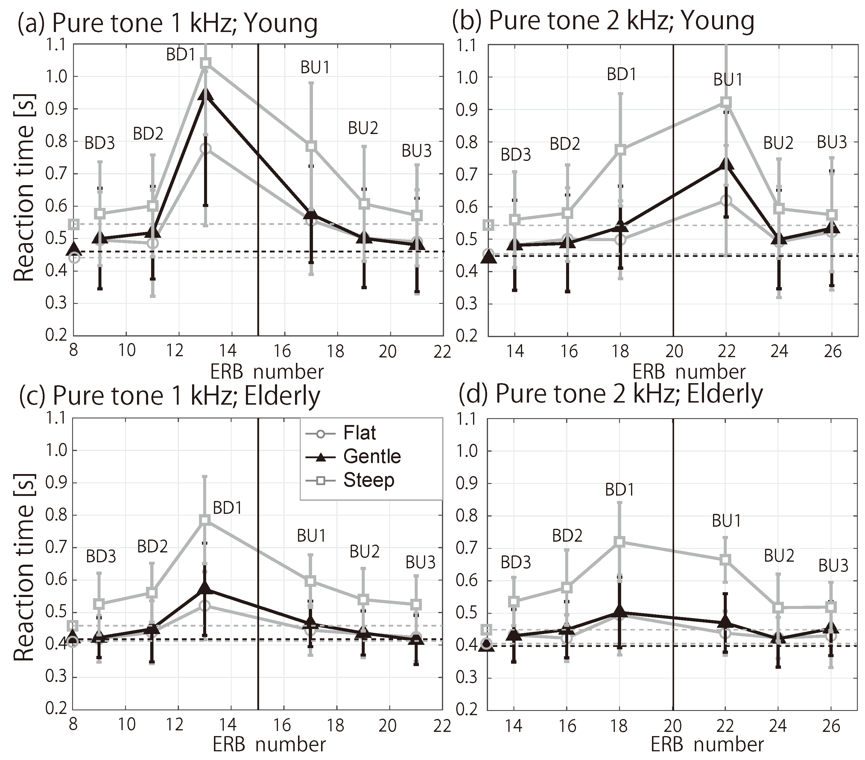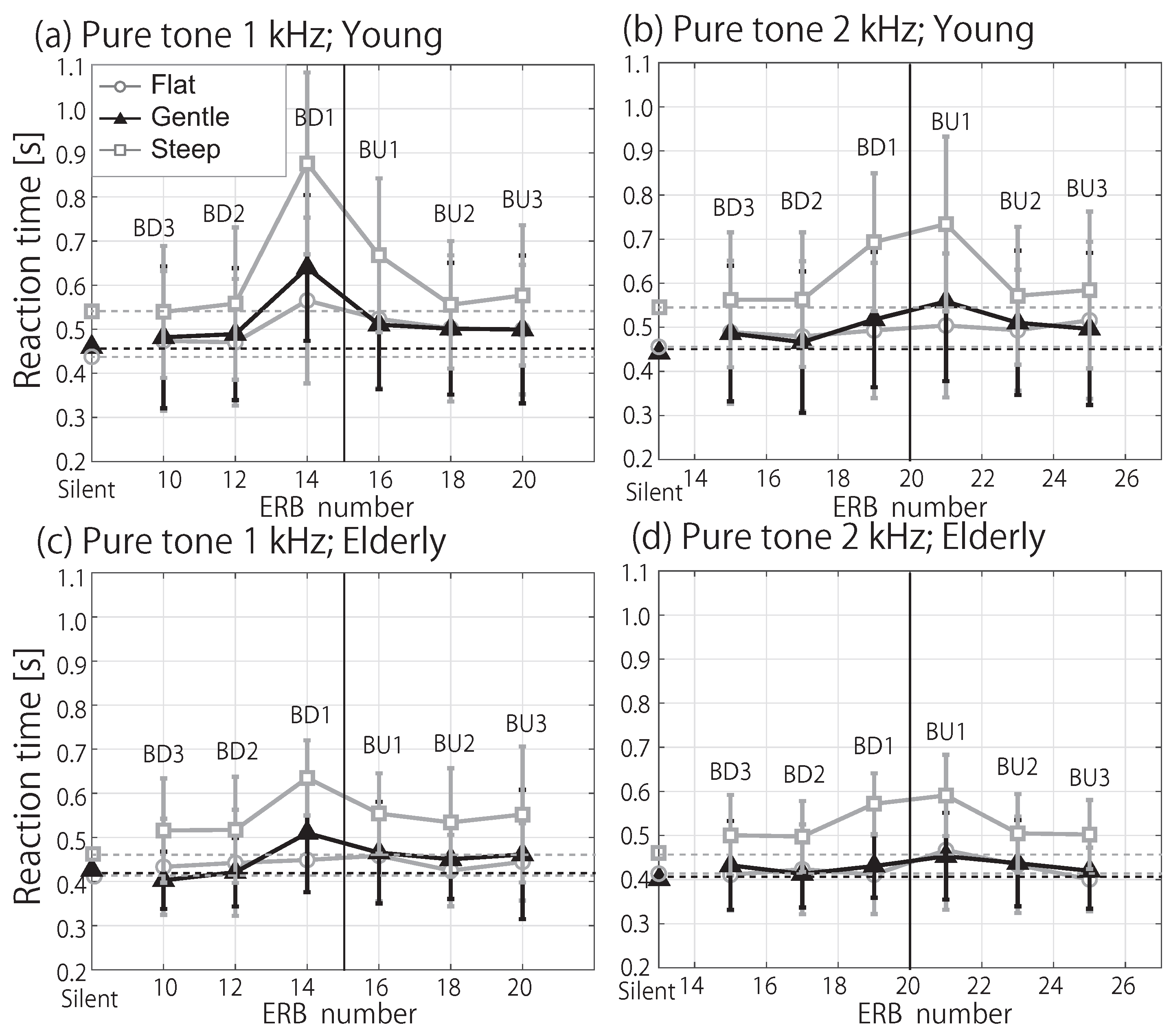- Epstein, M.; Florentine, M. Reaction time to 1- and 4-kHz tones as a function of level. Ear Hear. 2006, 27, 424–429. [Google Scholar] [CrossRef]