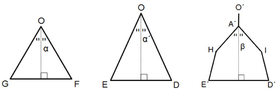 In order to find the collapse point angle, h should be identified first. From the geometrical descriptions in Figure 4, the following relations can be made.