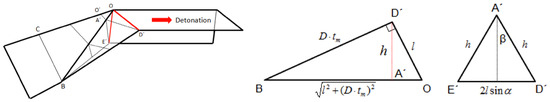 is perpendicular to the jetting plane, and the jetting plane is under different angle with the detonation front plane