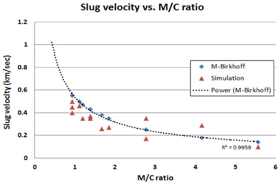 The slug velocity of the modified Birkhoff theory shows somewhat higher values in the entire range of the M/Cs than that of the simulation results. However the differences ranging from 0.04 to 0.15 km/s and ±0.08 km/s as an average difference are believed to be reasonable.