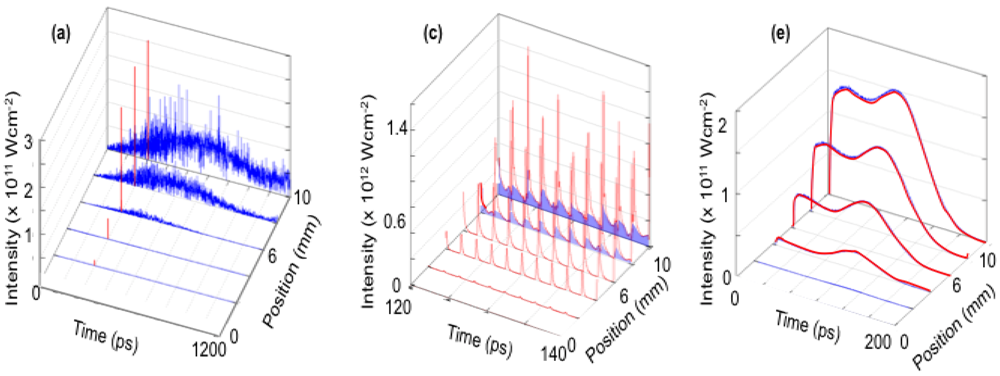 Figure 6a displays the temporal evolution of the emitted beam at different plasma lengths. The same features shown in Ditmire