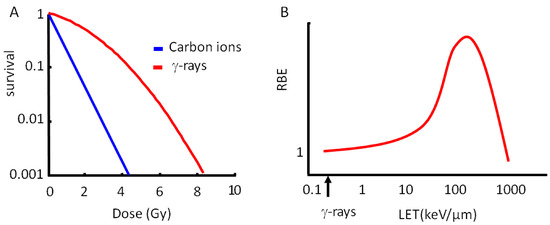 Here, we address the radiobiological basis of radiation therapy. It is useful to know whether a certain type of radiation from a certain type of source is advantageous over another for tumor curability. Curability is not determined solely by the effectiveness of radiation to individual cells, as it is well known that there are other factors, such as cell to cell communication and complex interactions between tissues, that could affect the sensitivity of tissues or organs [88,89]. However, knowledge from cellular radiobiology is at least an essential basis for assessing the effectiveness of radiation therapy. It is important to note that the biological effectiveness is not the only factor that determines the effectiveness of radiation therapy as a whole, since the energetic properties, reproducibility of doses among fractionated exposure, feasibility of irradiation, etc., also affect the overall effectiveness.