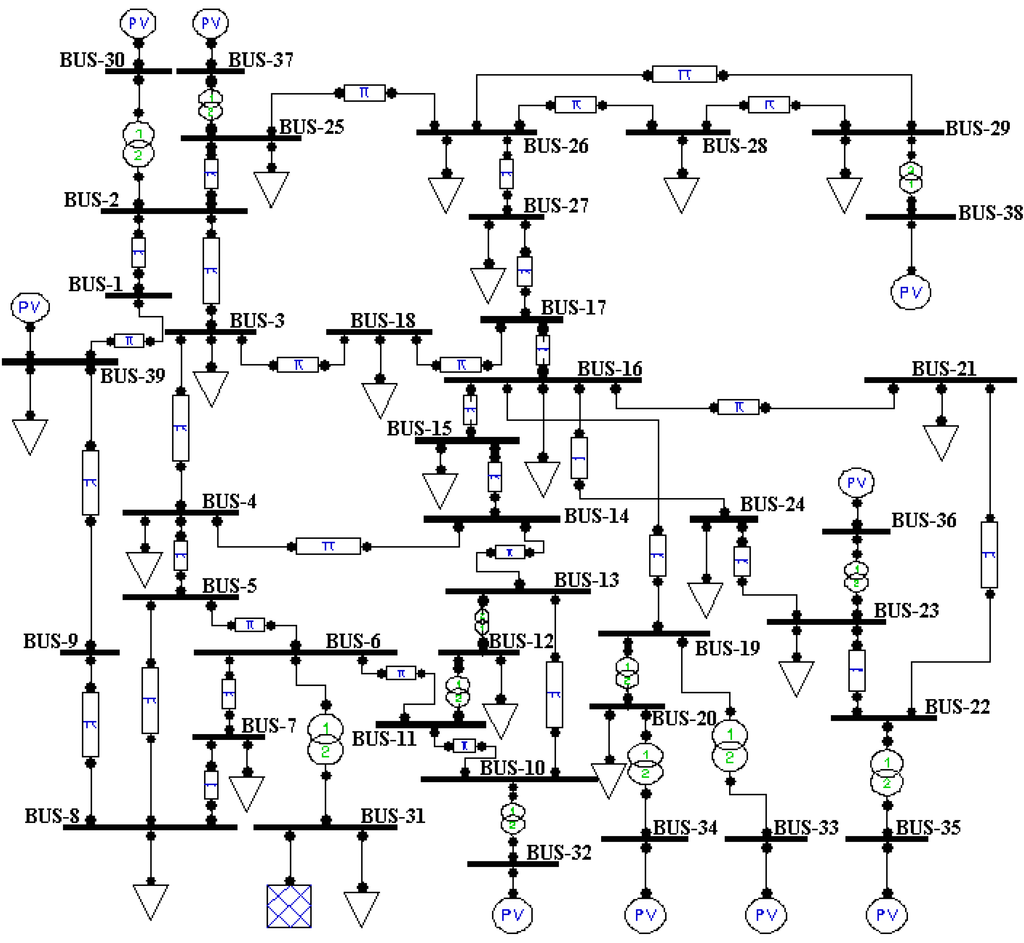 Fault 1 = 0.080184BUS1 + 0.162261BUS2 + 0.266219BUS3 + 0.127872BUS4               + 0.101886BUS5 + 0.094243BUS6 + 0.060710BUS7 + 0.092570BUS8               + 0.056463BUS9 + 0.105765BUS10 + 0.096482BUS11 + 0.106159BUS12               + 0.109040BUS13 + 0.128760BUS14 + 0.178810BUS15 + 0.204963BUS16               + 0.337853BUS17 + 0.520984BUS18 + 0.092290BUS19 + 0.057301BUS20               + 0.144469BUS21 + 0.120420BUS22 + 0.106459BUS23 + 0.224937BUS24               + 0.146205BUS25 + 0.228639BUS26 + 0.269287BUS27 + 0.130908BUS28               + 0.110627BUS29 + 0.069968BUS30 + 0.058711BUS31 + 0.065727BUS32               + 0.063605BUS33 + 0.044253BUS34 + 0.091074BUS35 + 0.047710BUS36               + 0.082034BUS37 + 0.069996BUS38 + 0.003890BUS39