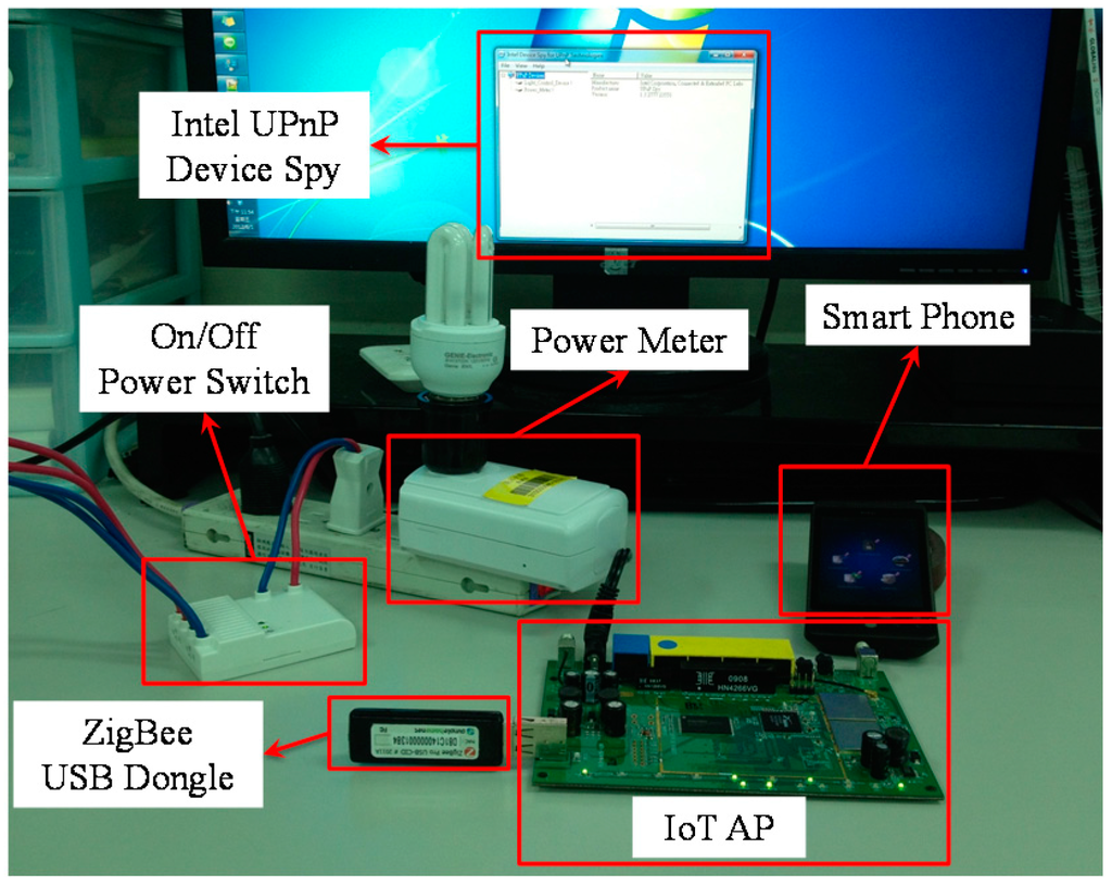 This paper uses the ZigBee devices that have been certified by ZigBee Alliance to build ZigBee Home Automation Network. As shown in Figure 8, the IoT AP is connected to the ZigBee transceiver, Power Meter and On/Off Power Switch.