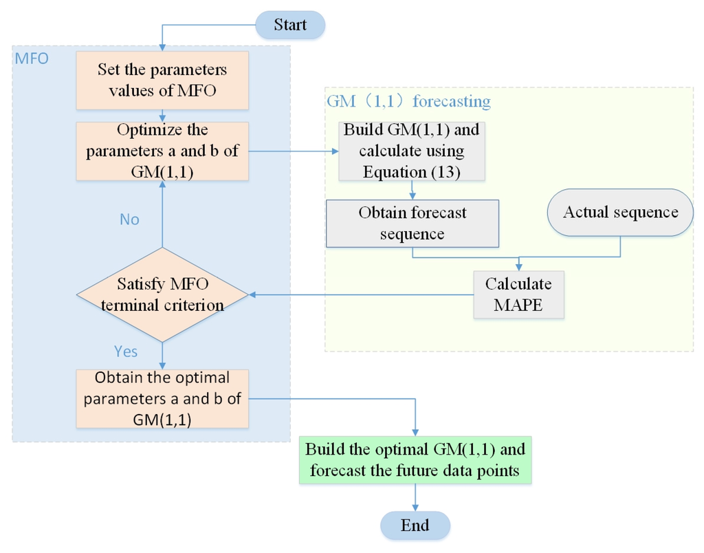 The process of MFO-GM (1,1) is illustrated in Figure 4.