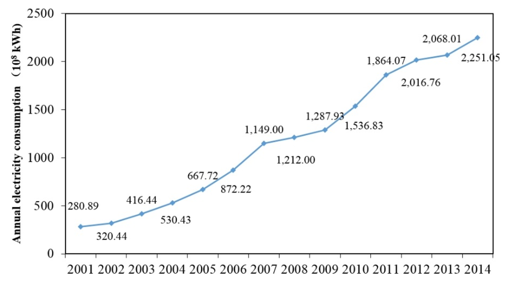 Since the 1970s, much literature has focused on developing various kinds of forecasting techniques for electric energy [2]. The traditional forecasting methods mainly include electric elasticity coefficient method [3], trend extrapolation technique [4], regression analysis method [5,6,7], time series method [8], and so on. However, the traditional approach greatly depends on an accurate model. Some parameters are set as fixed values in the process of prediction so that the forecasting results would be difficult for reflecting the real electricity demand accurately, which causes the traditional models to show a poor performance for electricity consumption forecasting in terms of accuracy and reliability [9].