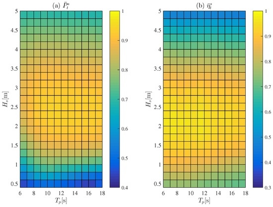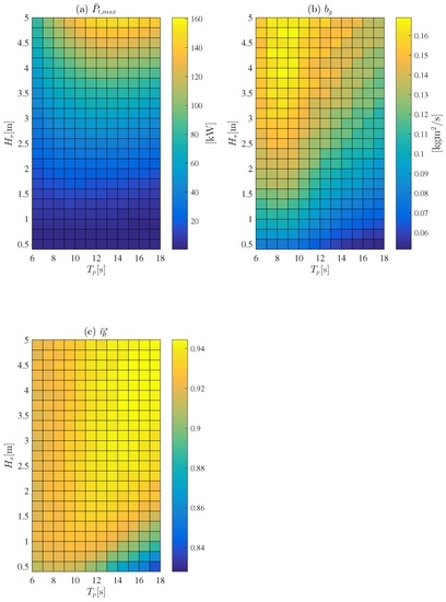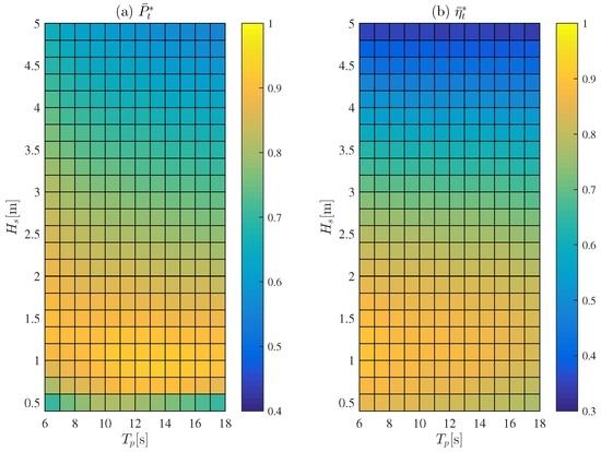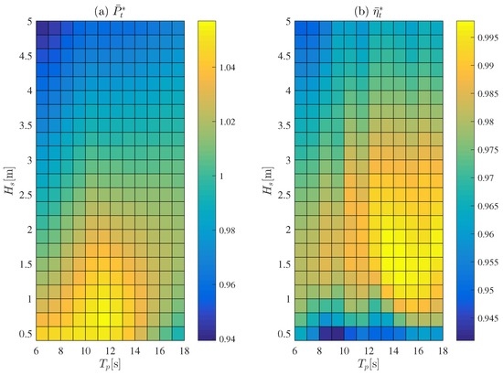 We determined and by performing 5000 s simulations whilst using the i-MET controlled OWC-WEC system with . This was done in a PM wave environment with a peak period () of 6∼18 s and significant wave height () of ∼.