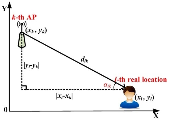 Geometric relations between the i-th real location and k-th Access Point (AP).