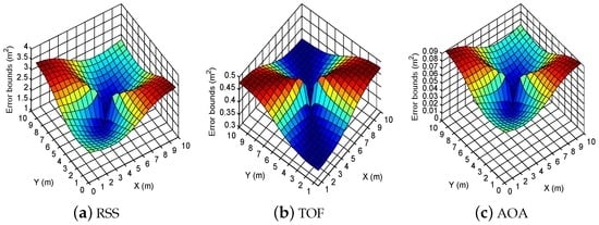 Therefore, based on (8), the error bound by using the metric of RSS/TOF with respect to is: