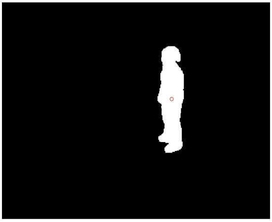 - First of all, we calculate the centroid of a human silhouette using Equation (2), as shown in Figure 3.where