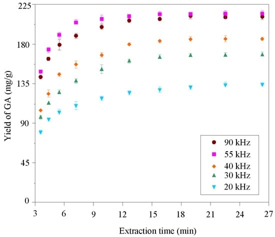 - Liao, J.; Qu, B.; Liu, D.; Zheng, N. New method to enhance the extraction yield of rutin from Sophora japonica using a novel ultrasonic extraction system by determining optimum ultrasonic frequency. Ultrason. Sonochem. 2015, 27, 110–116. [Google Scholar] [CrossRef] [PubMed]