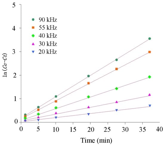 - Merouani, S.; Hamdaoui, O.; Rezgui, Y.; Guemini, M. Effects of ultrasound frequency and acoustic amplitude on the size of sonochemically active bubbles-Theoretical study. Ultrason. Sonochem. 2013, 20, 815–819. [Google Scholar] [CrossRef] [PubMed]