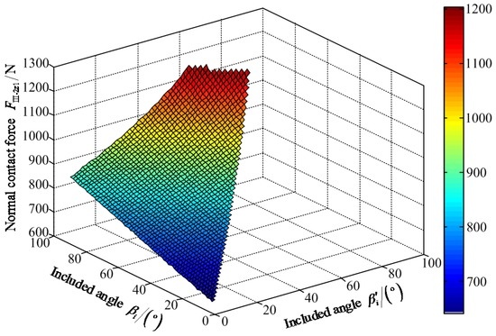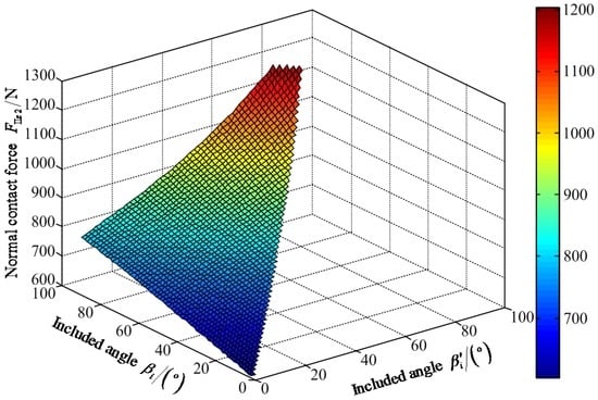 Variable tendency chart of normal contact force FIz1 with changes of βi′ and βi.