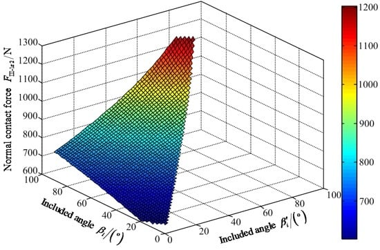 Variable tendency chart of normal contact force FIIz2 with the changes of βi′ and βi.