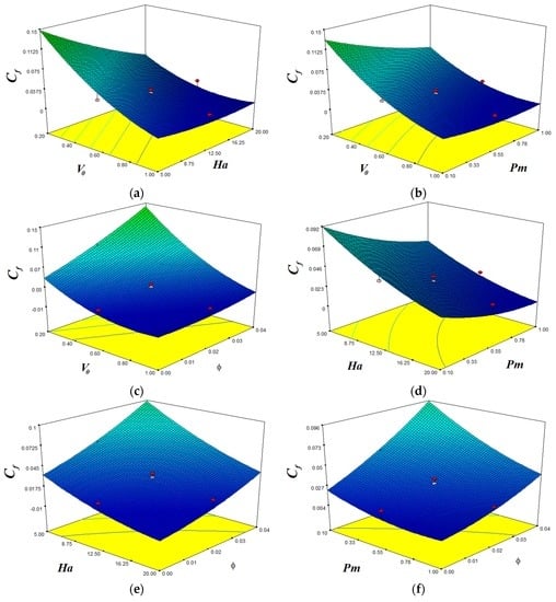 Influences of magnetic Prandtl number , Hartmann number , suction parameter and nanoparticle volume fraction on skin friction coefficient are depicted in Figure 6 and Figure 7. According to these data, a correlation is presented for skin friction coefficient as follows: