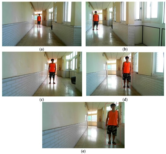 Through iteration of the above steps, we can calculate the similarity to the highest candidate image to achieve effective tracking. Figure 7 shows an example of a static background with a moving object. Figure 8 shows an example of a dynamic background with a moving object.