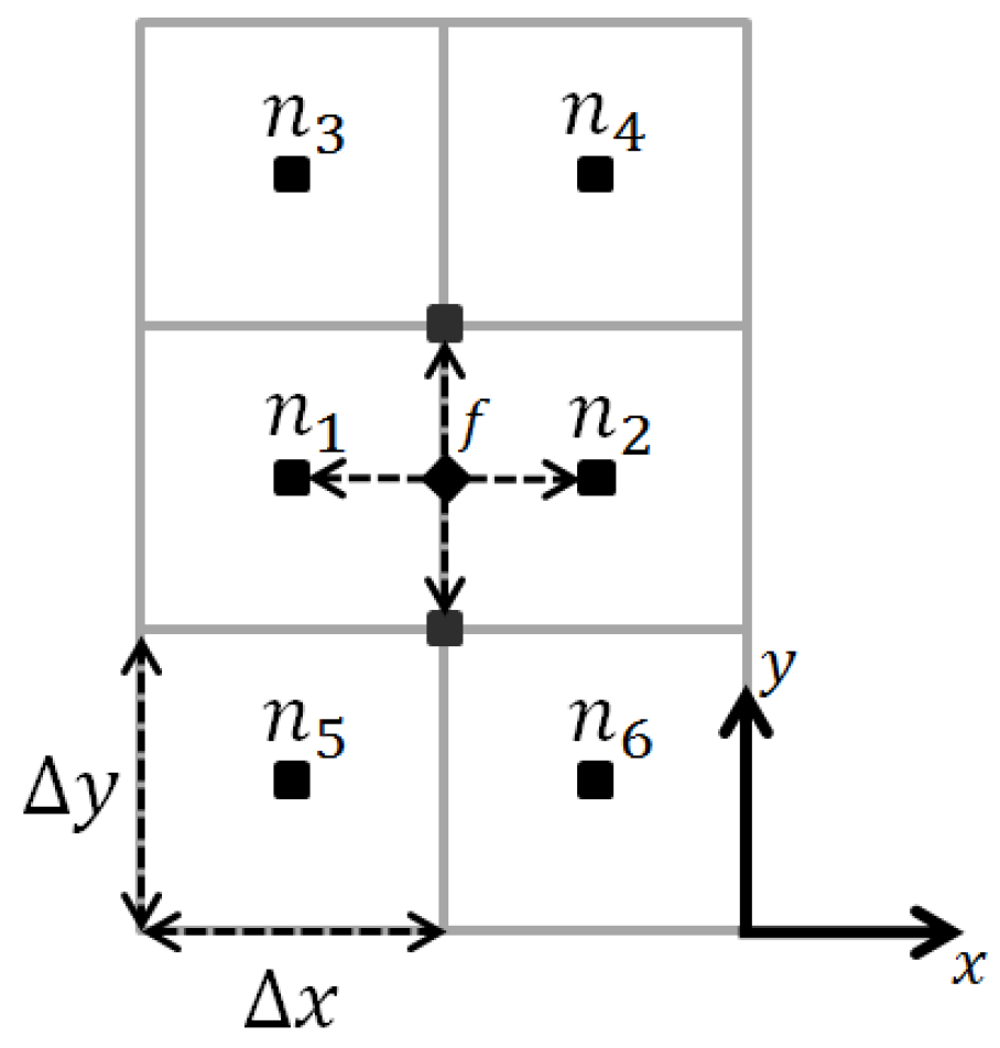 Gradient reconstruction (GR) is required in cell-centered (“element-centered”) FVM schemes in order to obtain partial derivatives of the different flow variables at the element facets. These variables will appear in the discretized equation from the application of the Gauss theorem to the divergence terms in the conservative equation. For structured Cartesian meshes, such as the one employed in