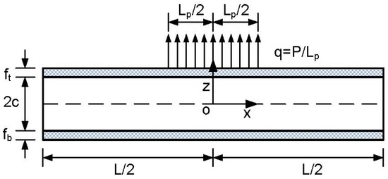 In Equation (7), P is the total amount of the applied load on the top face sheet and is the length where the uniform distributed load is applied, shown in Figure 1. In present study, only one locally distributed load applied at the center of the top face is considered. When multiple locally distributed loads are applied at other locations, they can be treated in the same manner as given in the following part.