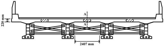 The target transverse joint originally designed by the strength design method corresponds to the A-A section as shown in Figure 2. The beam that was considered for the design had a length of 2407 mm, a width of 1000 mm in the longitudinal direction of the bridge, and a thickness of 220 mm.