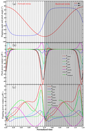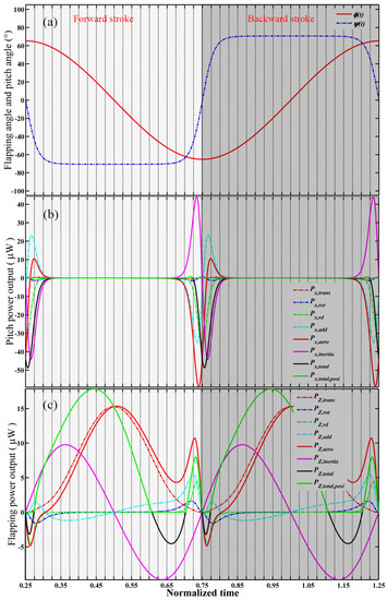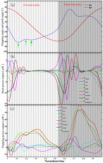 The inertial power is also included in the later optimization problem [58]. Similarly, take the consistency with much of reported literatures and convenience of measuring optimization objective into consideration [8,34,54,56], we present specific total power P*, i.e., power normalized to mass of insect body: