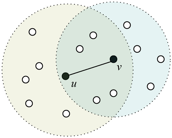 In [5,6], the authors propose the interference model of WSNs. In this model, the network interference is defined. As shown in Figure 3, node u and node v can communicate with each other and can affect all the nodes that fall into their coverage area. The interference is the cardinality of nodes covered by node u and node v with the transmission ranges that are chosen, which is: