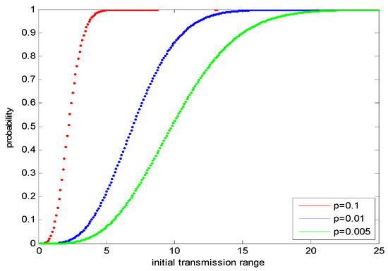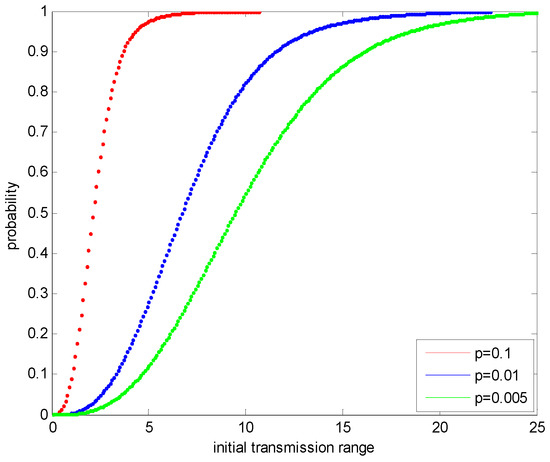 The probability under different transmission range in heterogeneous networks.